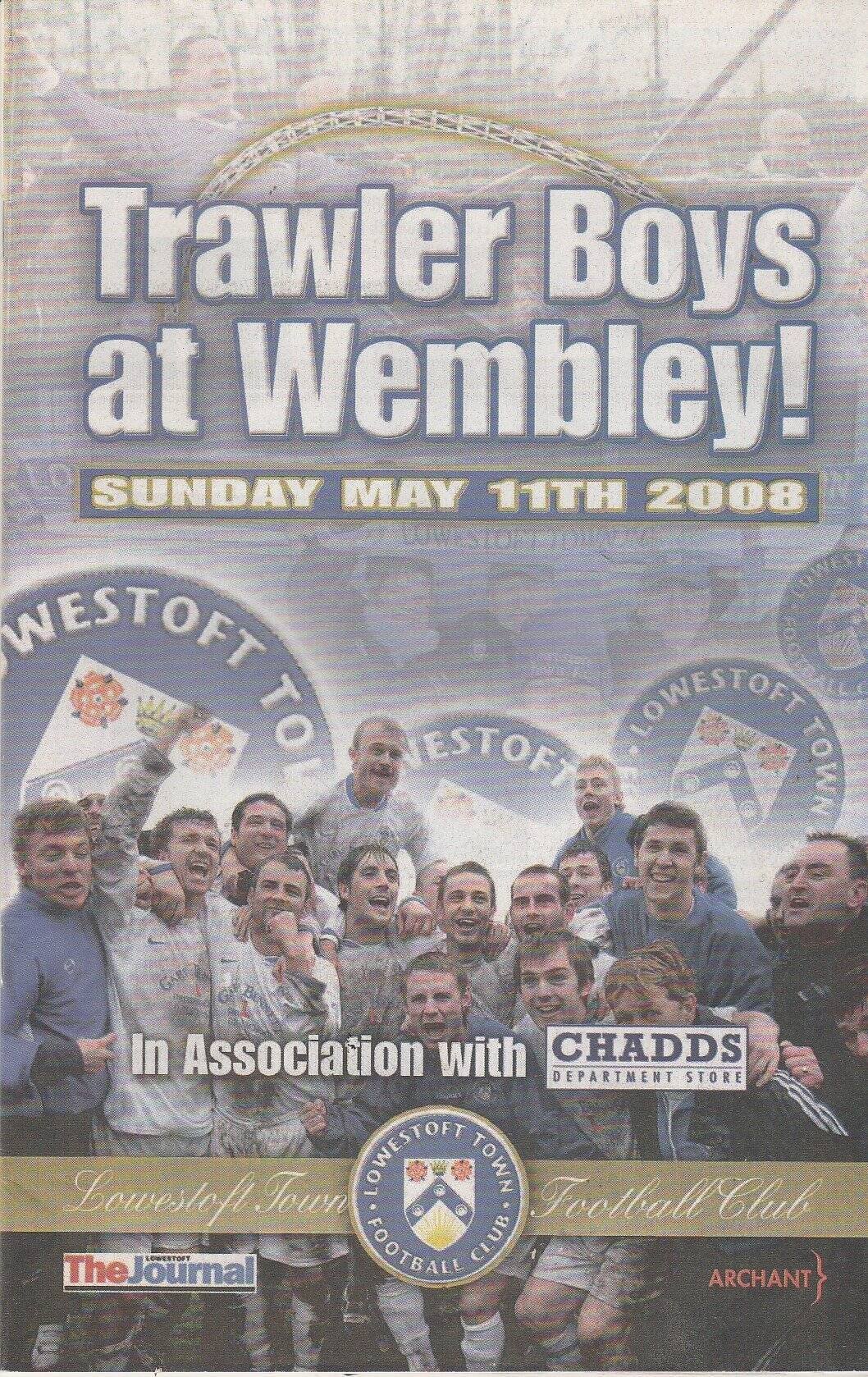 Title: Trawler Boys at Wembley Club: Lowestoft Town Issue: 11-May-2008 Rating: 3 Condition: Slight corner turn Pagination: 48 pages Weight in grams: 100