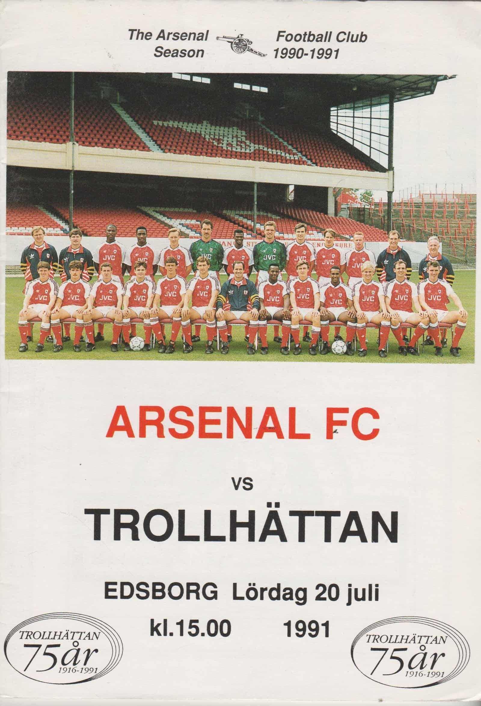 Match: Trollhättan v Arsenal Competition: Friendly Date: 20-Jul-1991 Comments: Rating: 4 Condition: Good Weight in grams: 100