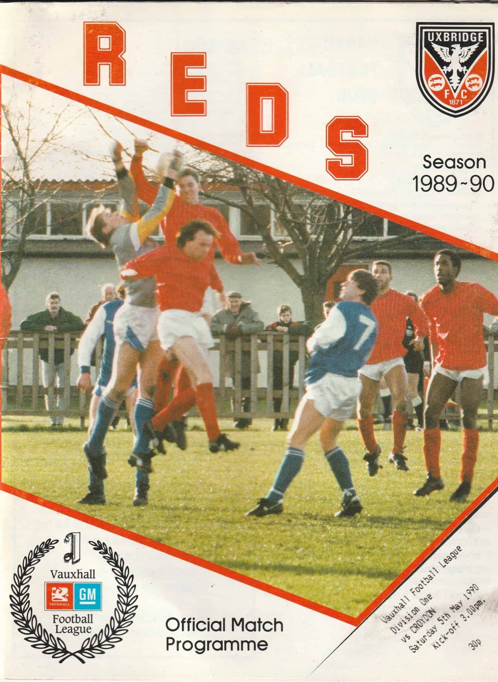 Match: Uxbridge v Croydon Competition: Vauxhall Opel League Division 1 Date: 05-May-1990 Comments: Rating: 4 Condition: Good Weight in grams: 80