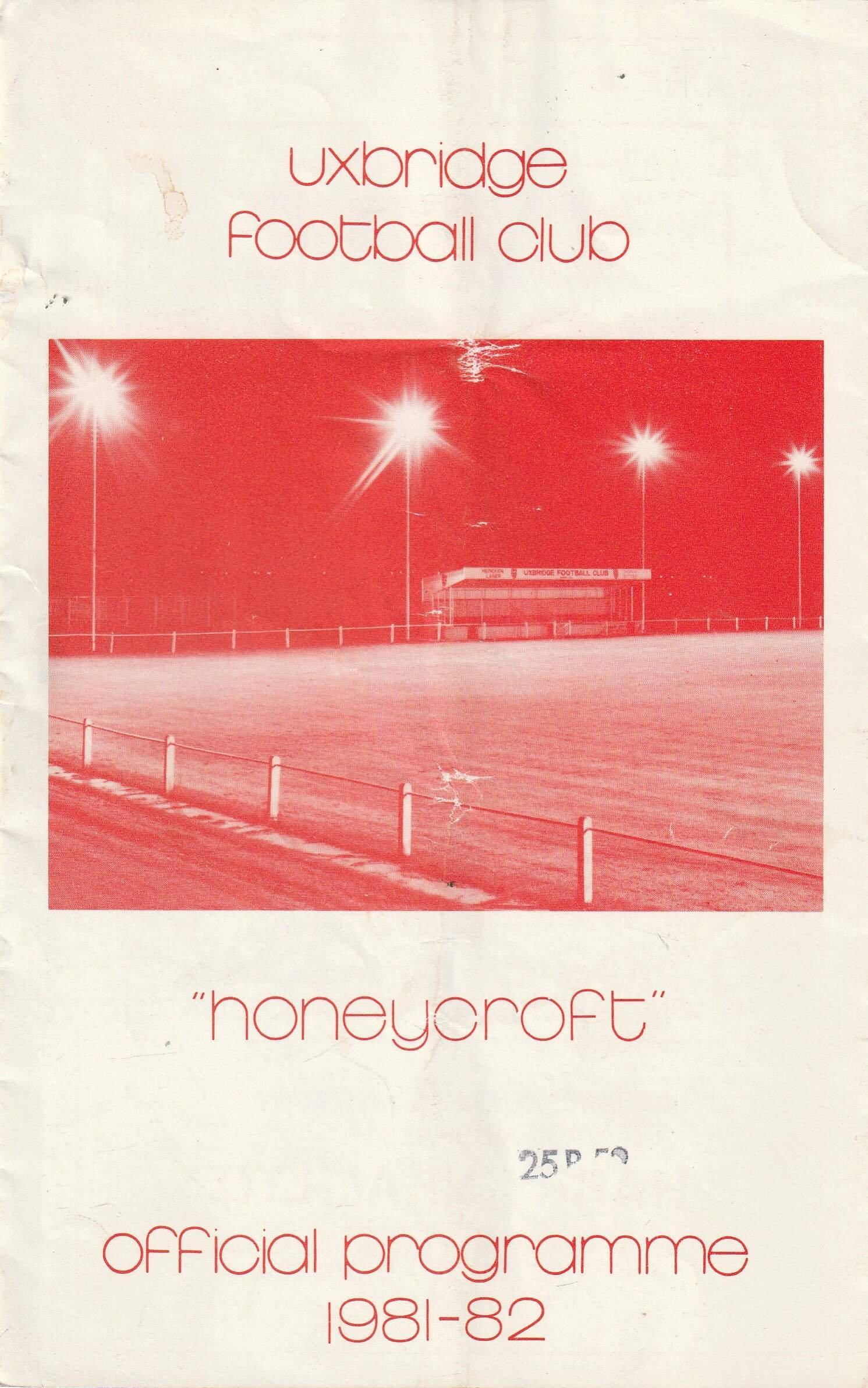Match: Uxbridge v Edgware Competition: Isthmian League Division 2 Date: 02-Jan-1982 Comments: Rating: 3 Condition: Fold, marks on cover Weight in grams: 60