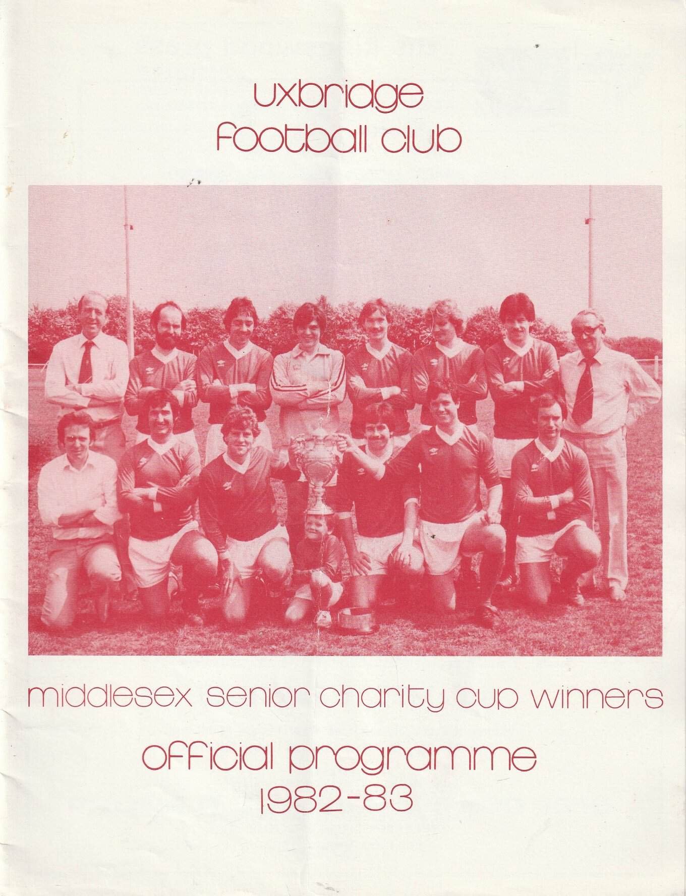 Match: Uxbridge v Hillingdon Borough Competition: Middlesex Senior Cup 2nd Round Date: 20-Nov-1982 Comments: Rating: 3 Condition: Fold Weight in grams: 60