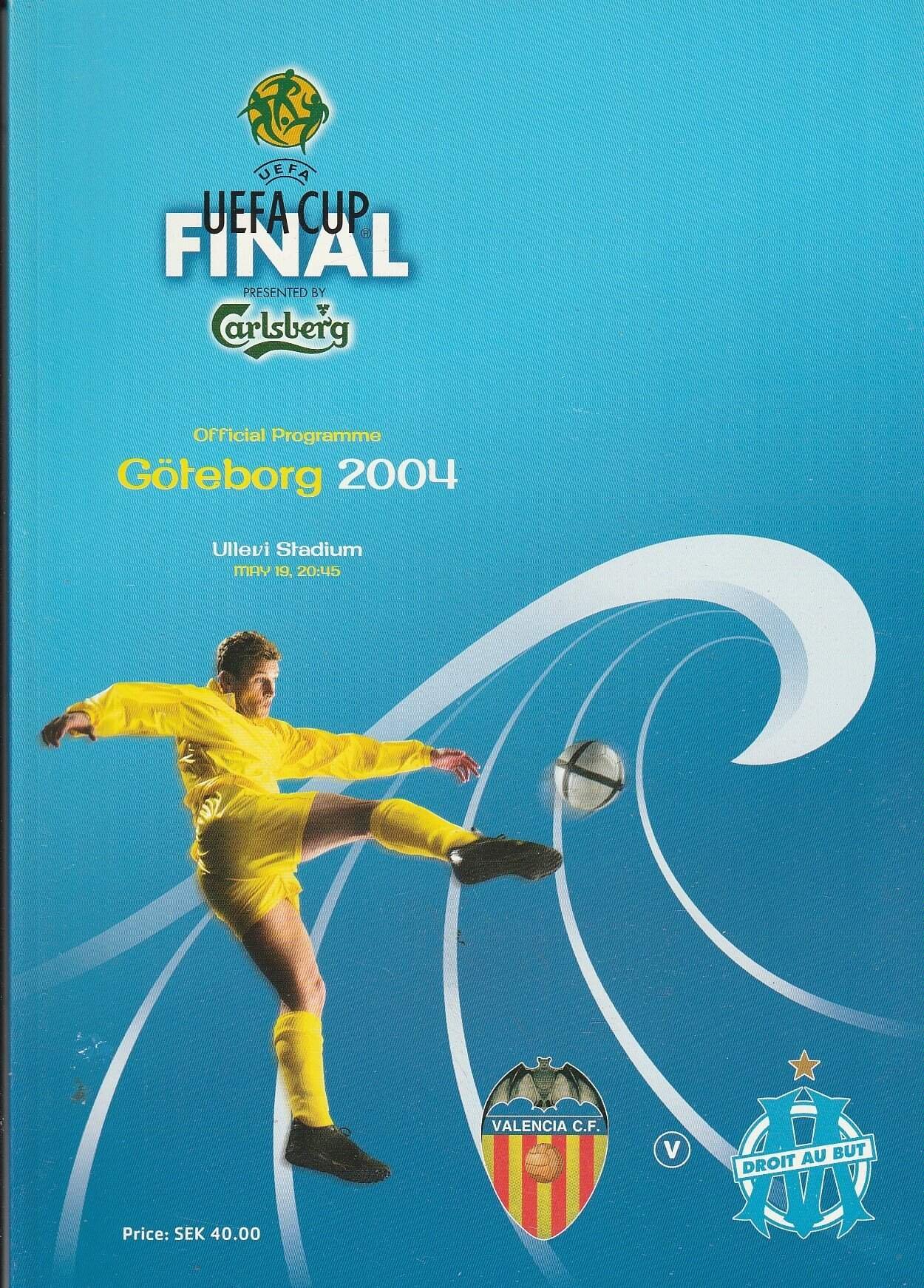 Match: Valencia v Olympique Marseille Competition: UEFA Cup Final Date: 19-May-2004 Comments: Played at Gothenburg FC Rating: 4 Condition: Very good Weight in grams: 500