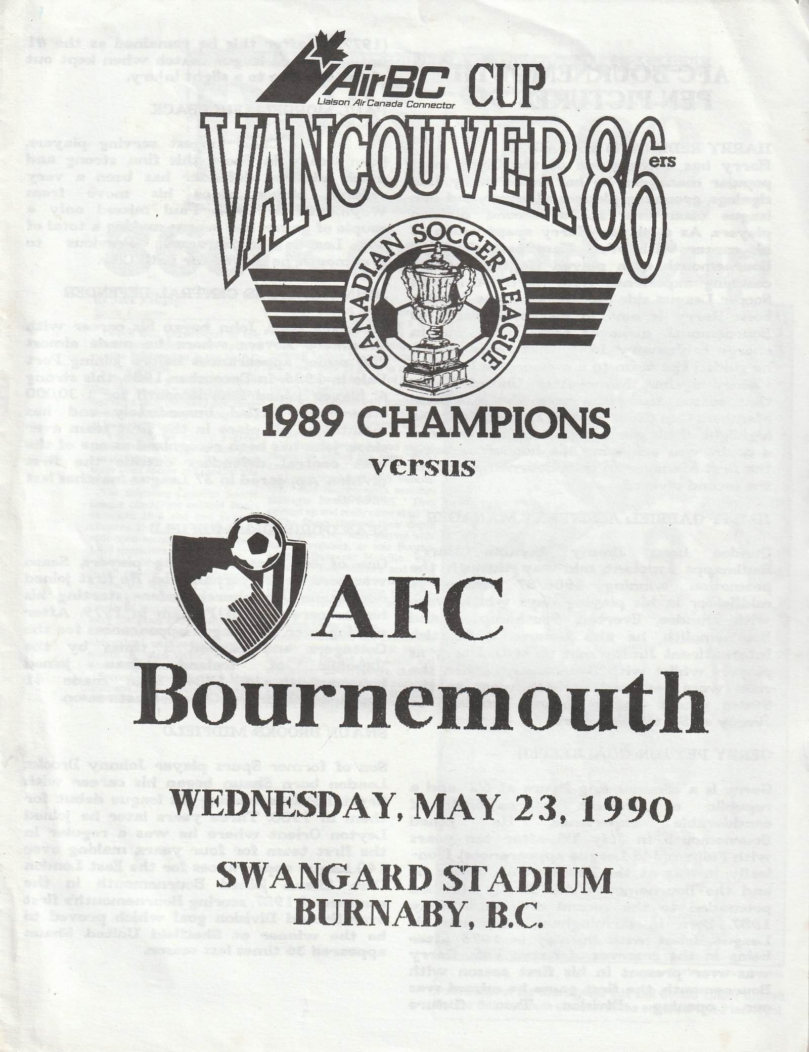Vancouver Whitecaps v AFC Bournemouth 23-May-1990