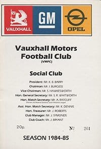 Match: Vauxhall Motors Luton v Luton Town Competition: Friendly Date: 17-09-1984 Comments: Rating: 4 Condition: very good Weight in grams: 60