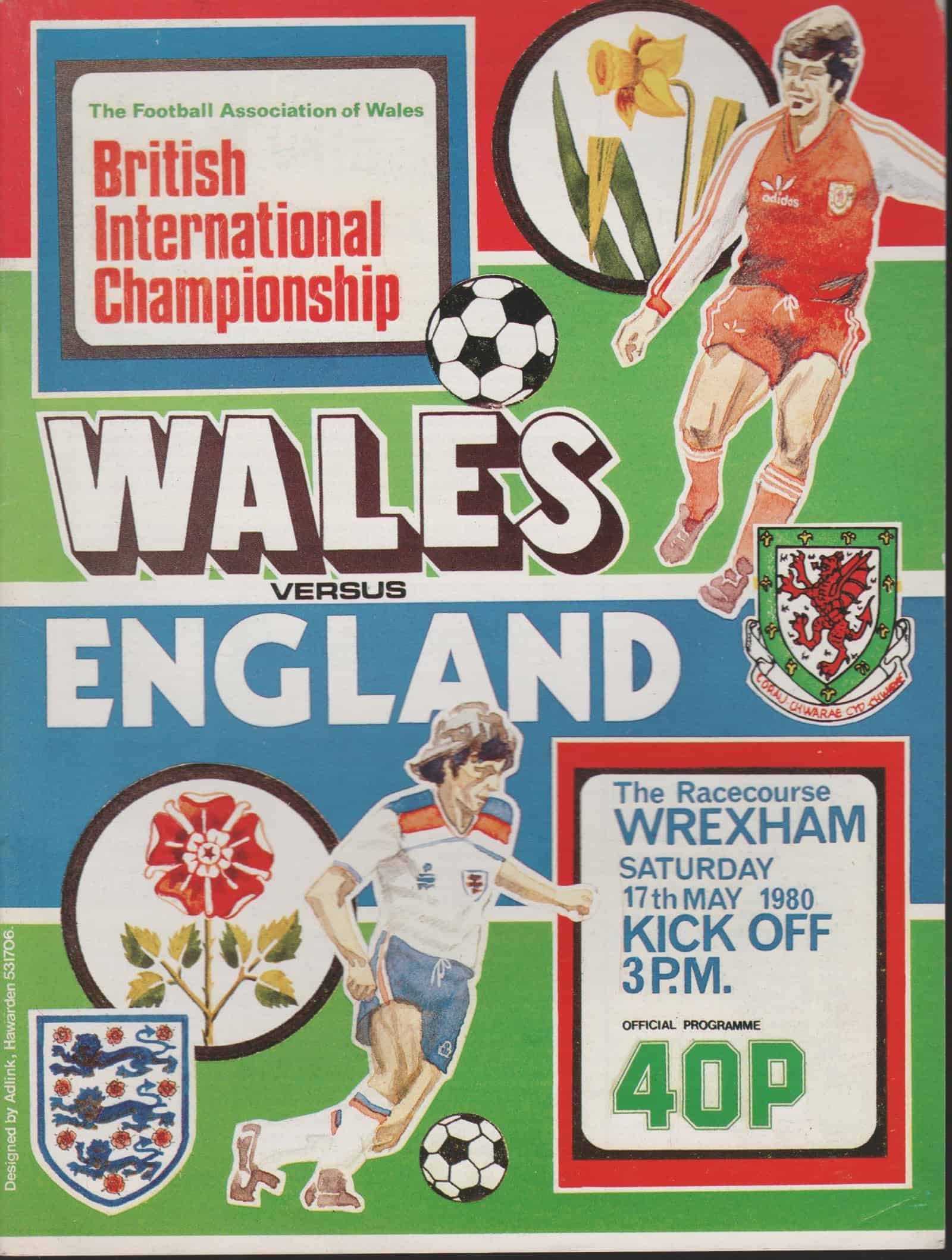 Match: Wales v England Competition: Home International Date: 17-05-1980 Comments: Rating: 4 Condition: Very good Weight in grams: 80