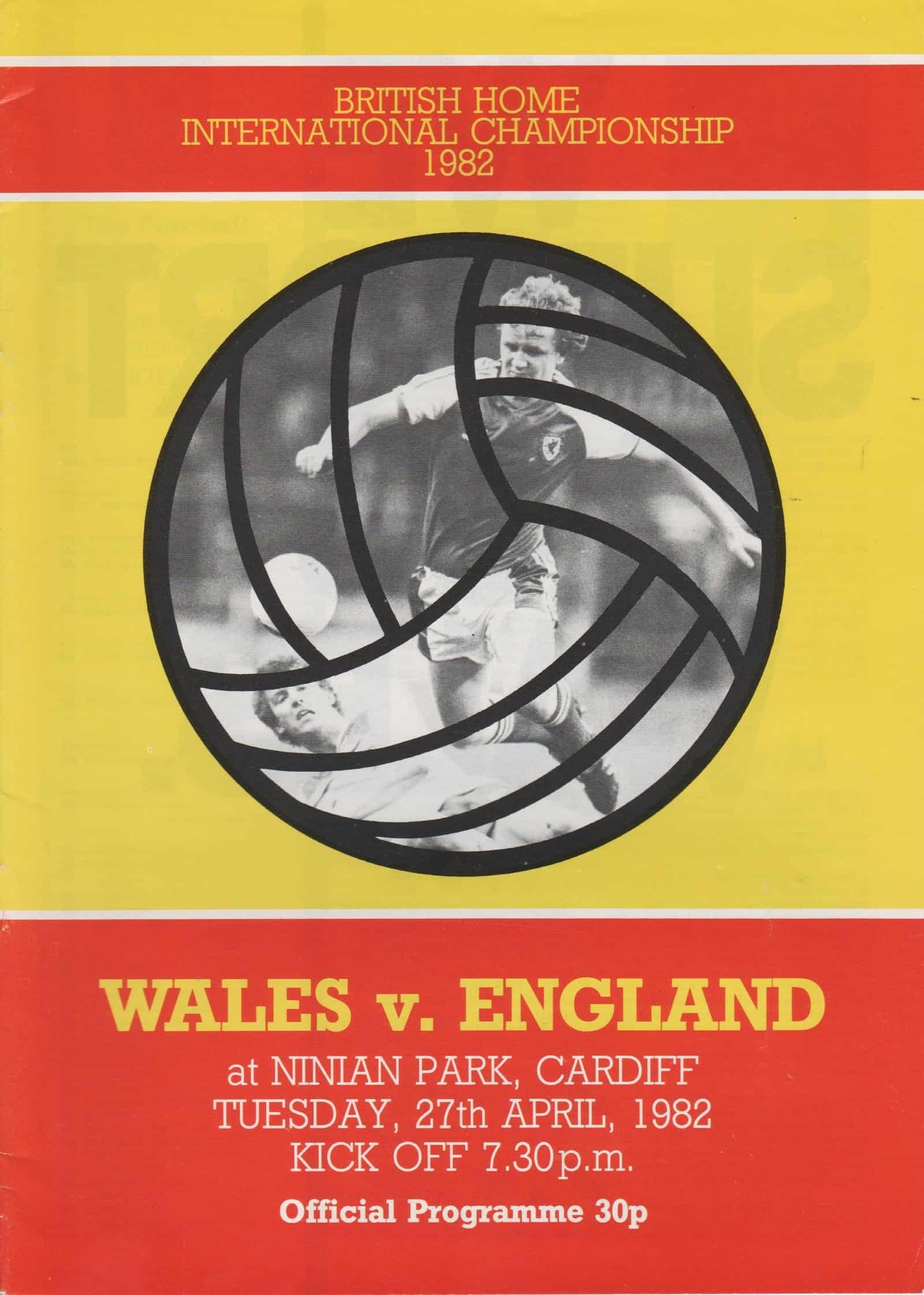 Match: Wales v England Competition: Home International Date: 27-04-1982 Comments: Rating: 4 Condition: Very good Weight in grams: 60