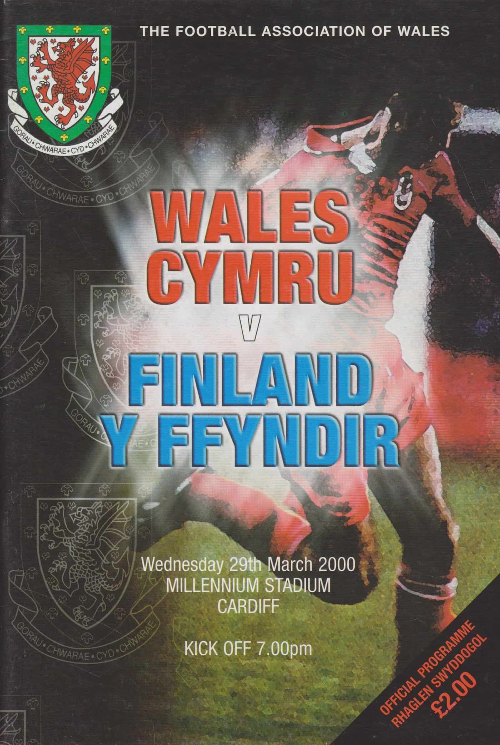 Match: Wales v Finland Competition: International Friendly Date: 29-03-2000 Comments: Rating: 5 Condition: Excellent Weight in grams: 100
