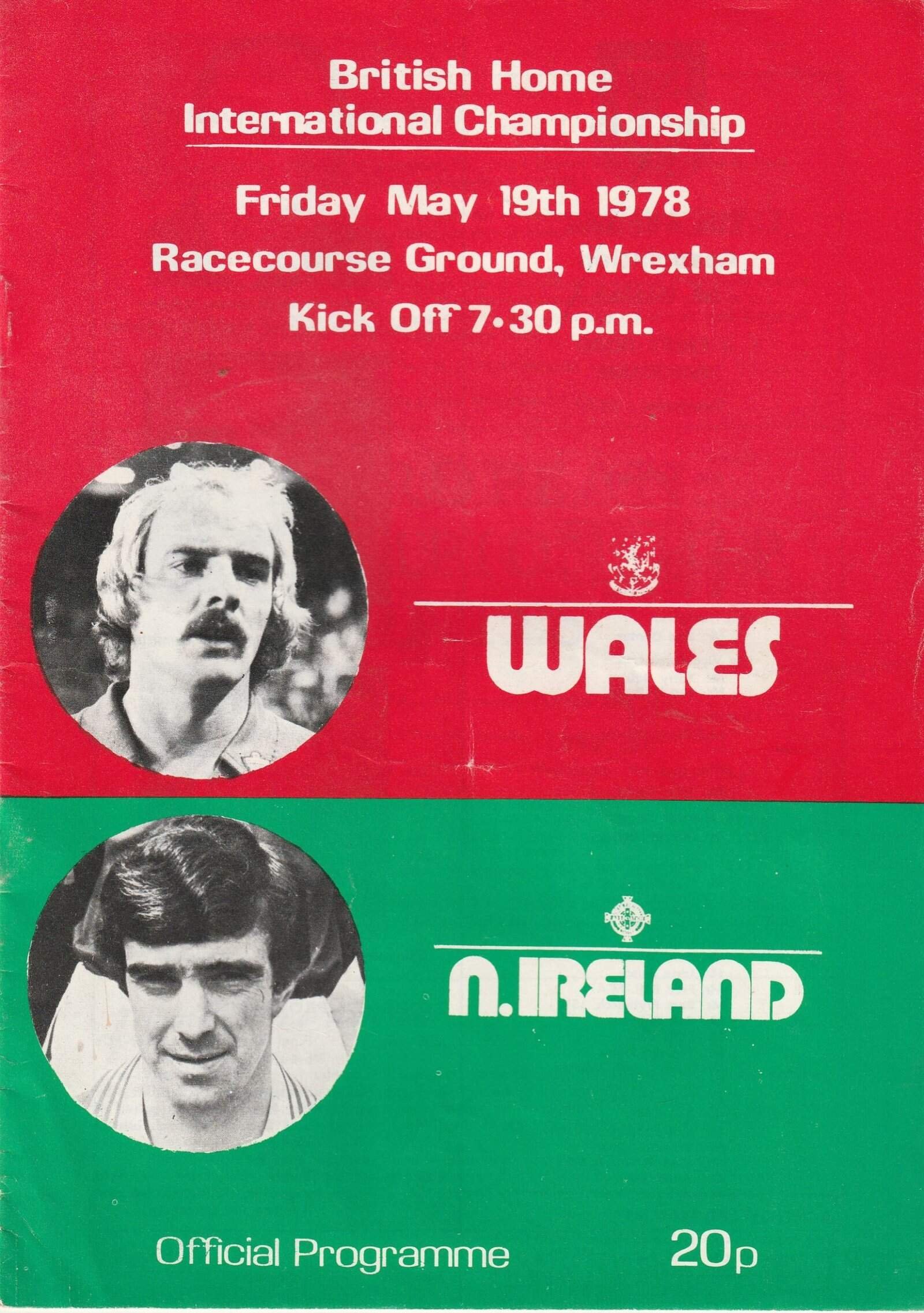 Match: Wales v Northern Ireland Competition: British Championships Date: 19-May-1978 Comments: Rating: 3 Condition: One staple removed Weight in grams: 60