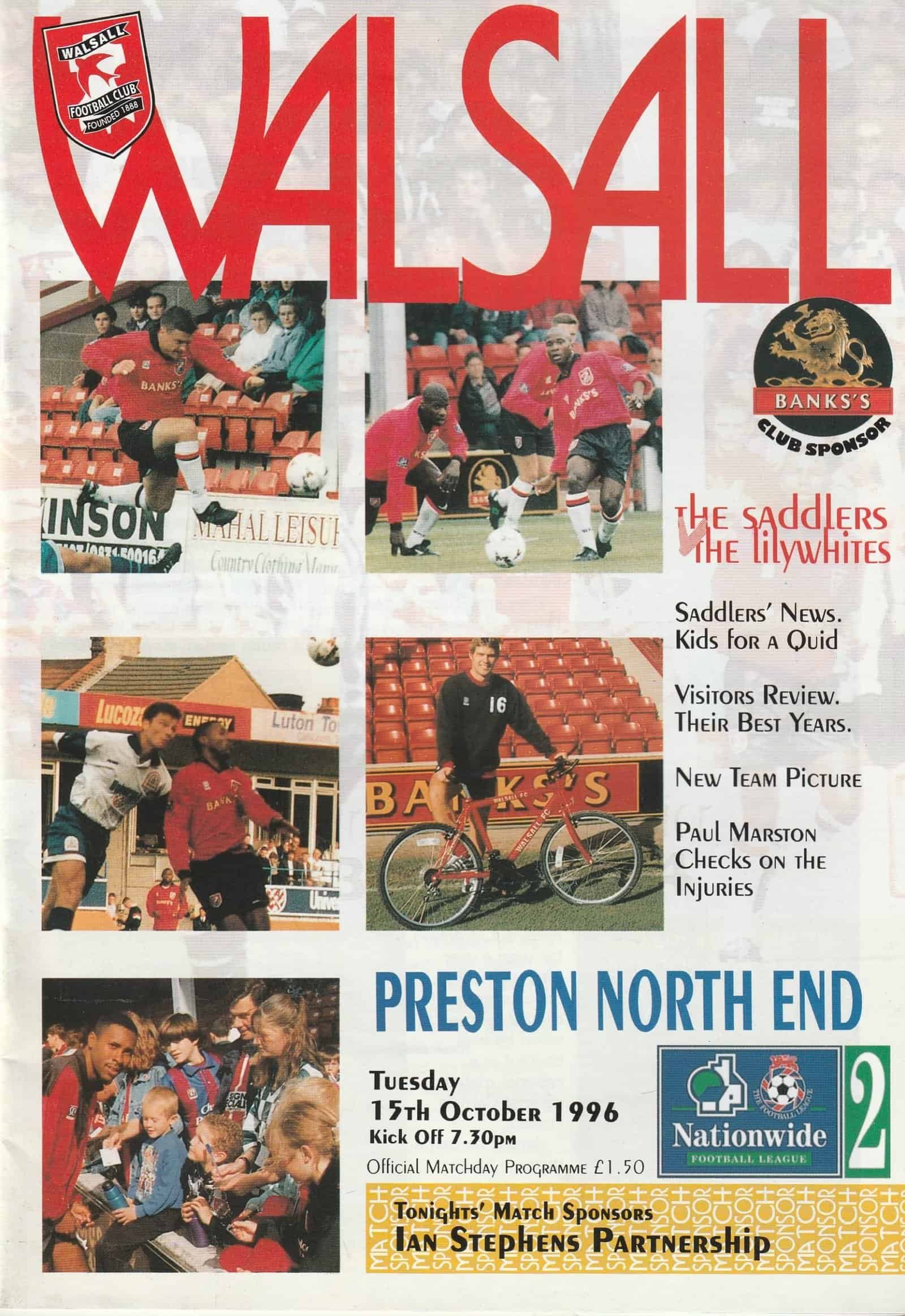 Match: Walsall v Preston North End Competition: League Division 2 Date: 15-Oct-1996 Comments: Rating: 4 Condition: Very good Weight in grams: 100