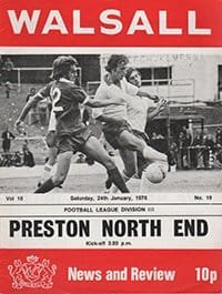 Match: Walsall v Preston North End Competition: League Division 3 Date: 24-01-1976 Comments: Rating: 4 Condition: Very good Weight in grams: 40