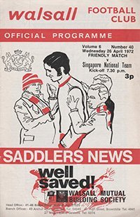 Match: Walsall v Singapore National Team Competition: Friendly Date: 26-04-1972 Comments: 1 Singapore auto on team page? Rating: 3 Condition: Slight fold Weight in grams: 20