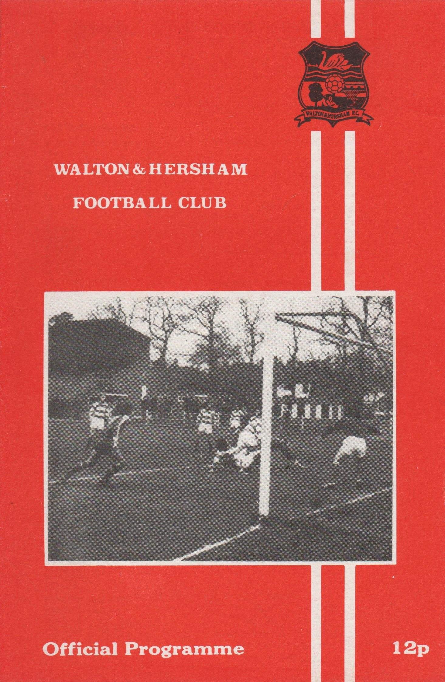 Match: Walton & Hersham v Aveley Competition: Isthmian League Division 1 Date: 04-Nov-1978 Comments: Rating: 4 Condition: Very good Weight in grams: 60