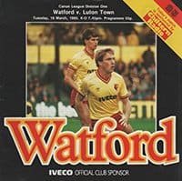 Match: Watford v Luton Town Competition: League Division 1 Date: 19-03-1985 Comments: Rating: 4 Condition: Team changes,faint fold Weight in grams: 80