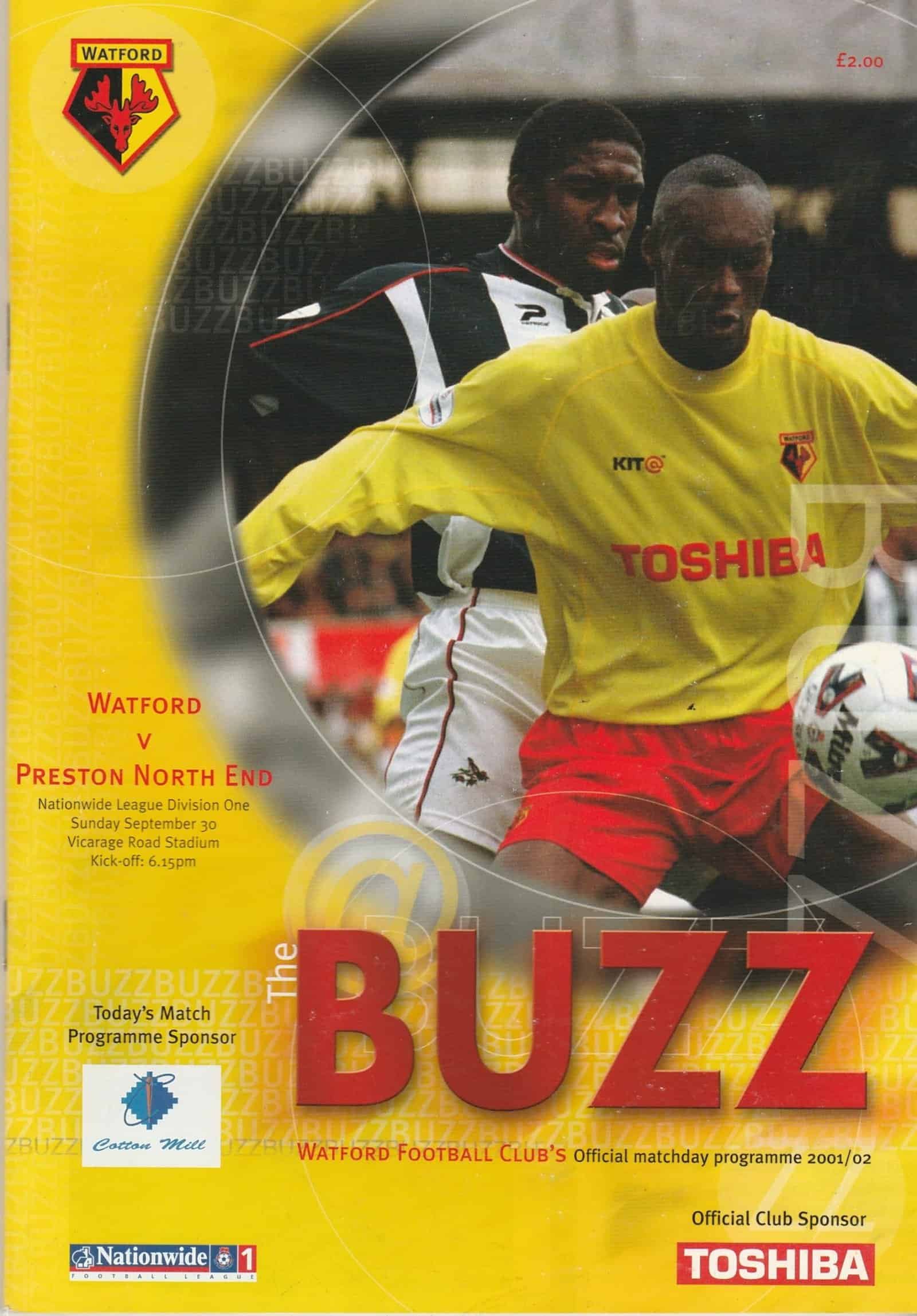 Match: Watford v Preston North End Competition: League Division 1 Date: 30-Sep-2001 Comments: Rating: 4 Condition: Very good Weight in grams: 220