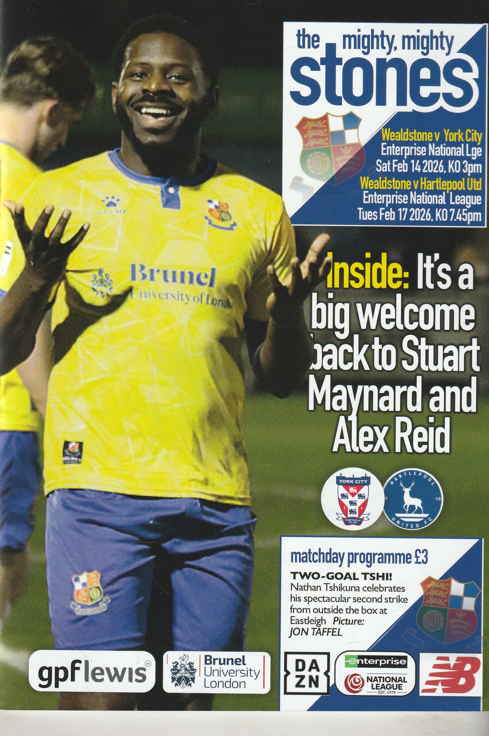 Match: Wealdstone v Hartlepool United Competition: Enterprise National League Date: 17-Feb-2026 Comments: Joint issue for York City fixture Rating: 4 Condition: Very good Weight in grams: 180