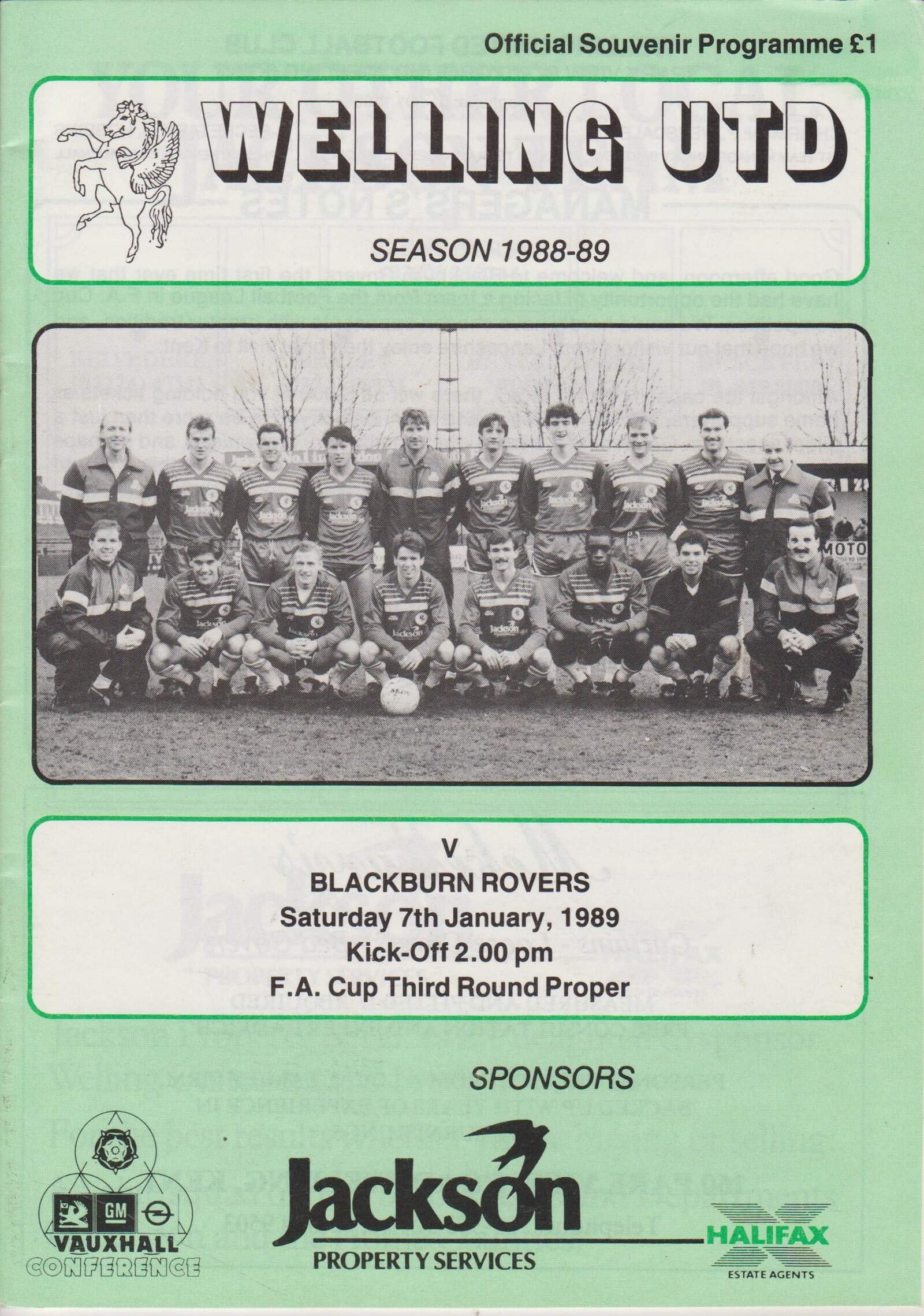 Match: Welling United v Blackburn Rovers Competition: FA Cup 3rd Round Date: 07-Jan-1989 Comments: Rating: 4 Condition: Very good Weight in grams: 60