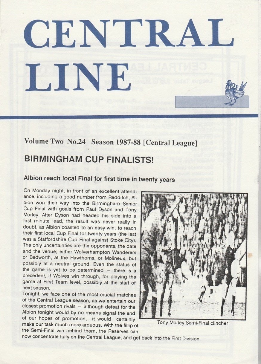 Match: West Bromwich Albion Reserves v Blackburn Rovers Reserves Competition: Central League Date: 09-Mar-1988 Comments: 4 page issue Rating: 3 Condition: Tear on back page Weight in grams: 40