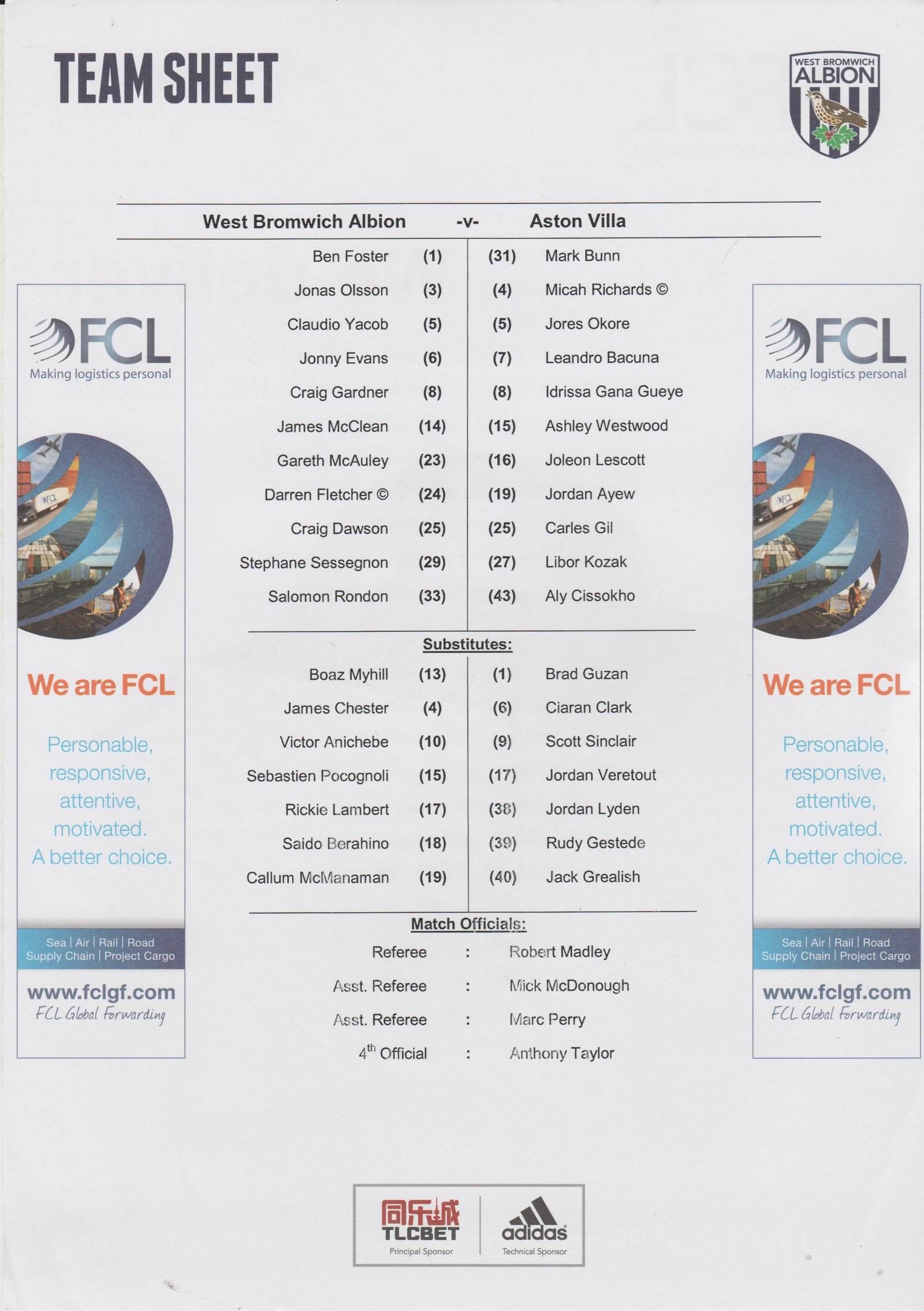 Match: West Bromwich Albion v Aston Villa Competition: Premier League Date: 23-Jan-2016 Comments: Rating: 4 Condition: Very good Weight in grams: 20