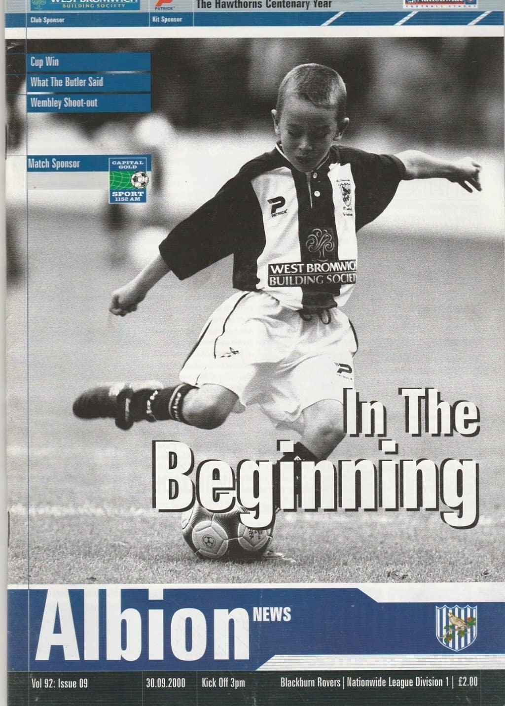 Match: West Bromwich Albion v Blackburn Rovers Competition: League Division 1 Date: 30-Sep-2000 Comments: Rating: 3 Condition: Corner fold Weight in grams: 160