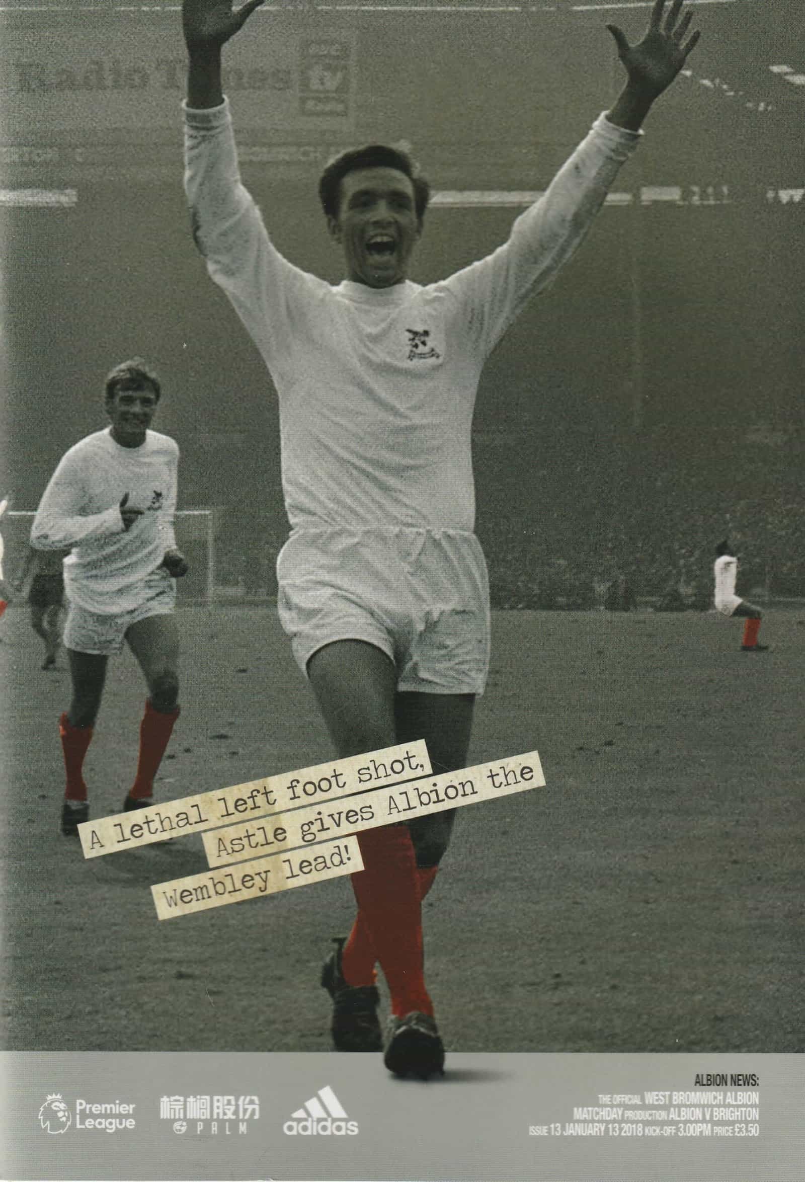 Match: West Bromwich Albion v Brighton & Hove Albion Competition: Premier League Date: 13-Jan-2018 Comments: Rating: 4 Condition: Very good Weight in grams: 220