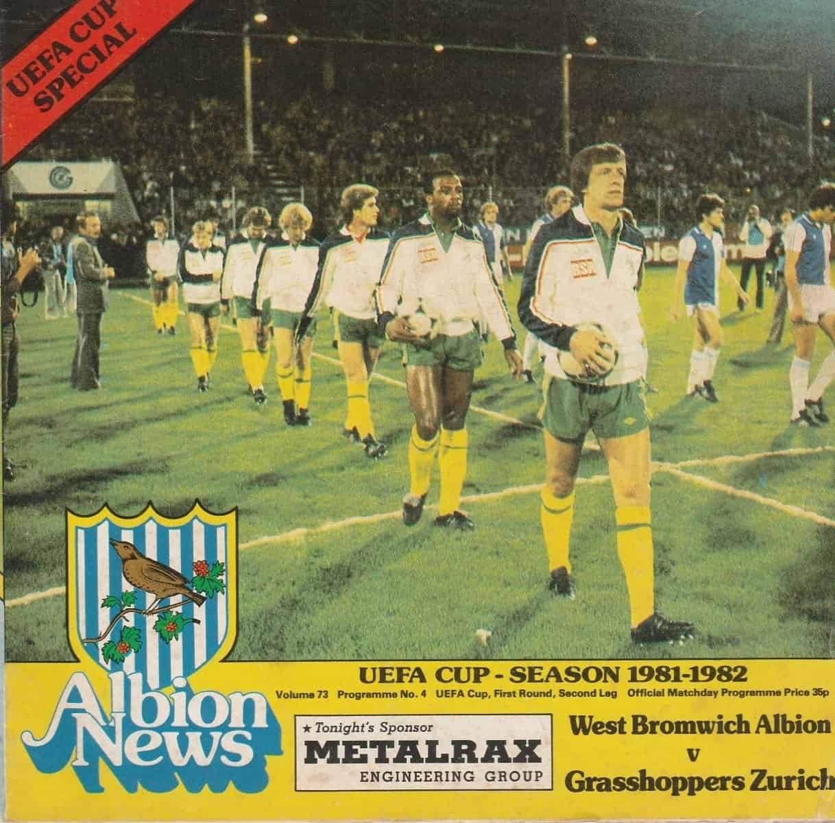 Match: West Bromwich Albion v Grasshoppers Zurich Competition: UEFA Cup 1st Round 2nd leg Date: 30-Sep-1981 Comments: Rating: 4 Condition: Slight corner fold on cover Weight in grams: 100