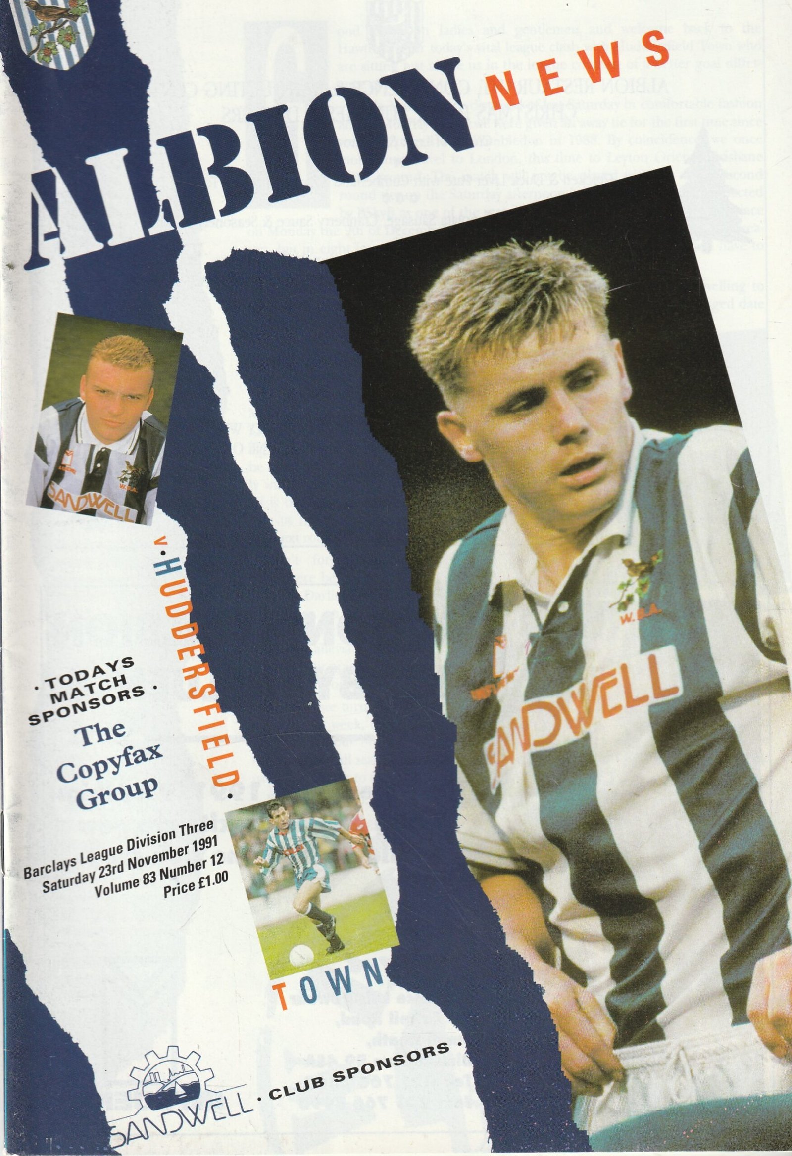 Match: West Bromwich Albion v Huddersfield Town Competition: League Division 3 Date: 23-Nov-1991 Comments: Rating: 4 Condition: Very good Weight in grams: 140