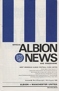 Match: West Bromwich Albion v Manchester United Competition: League Division 1 Date: 14-08-1968 Comments: Rating: 4 Condition: Very good Weight in grams: 40