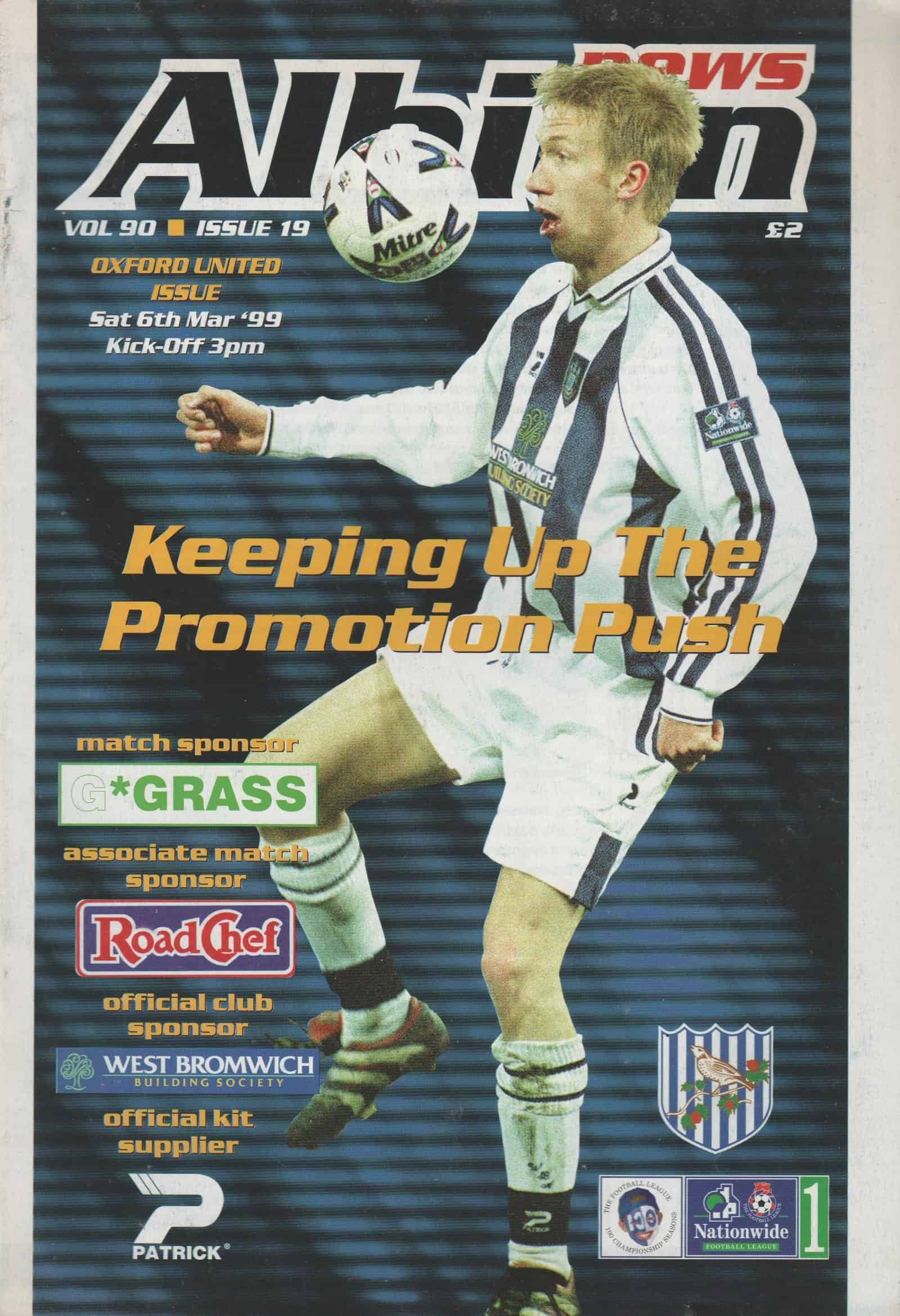 Match: West Bromwich Albion v Oxford United Competition: Nationwide League Division 1 Date: 06-Mar-1999 Comments: Rating: 3 Condition: Slight corner turn Weight in grams: 100