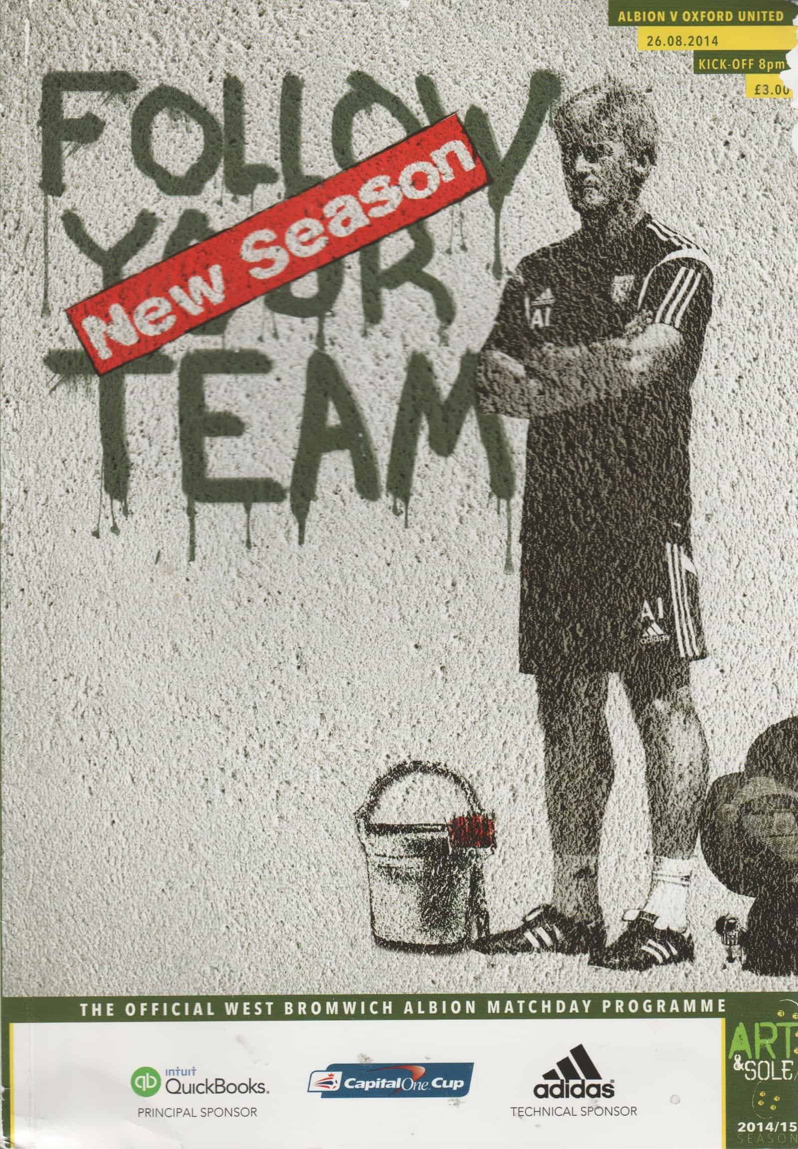 Match: West Bromwich Albion v Oxford United Competition: Capital One Cup 2nd Round Date: 26-08-2014 Comments: Rating: 3 Condition: Water damage on internal pages Weight in grams: 140