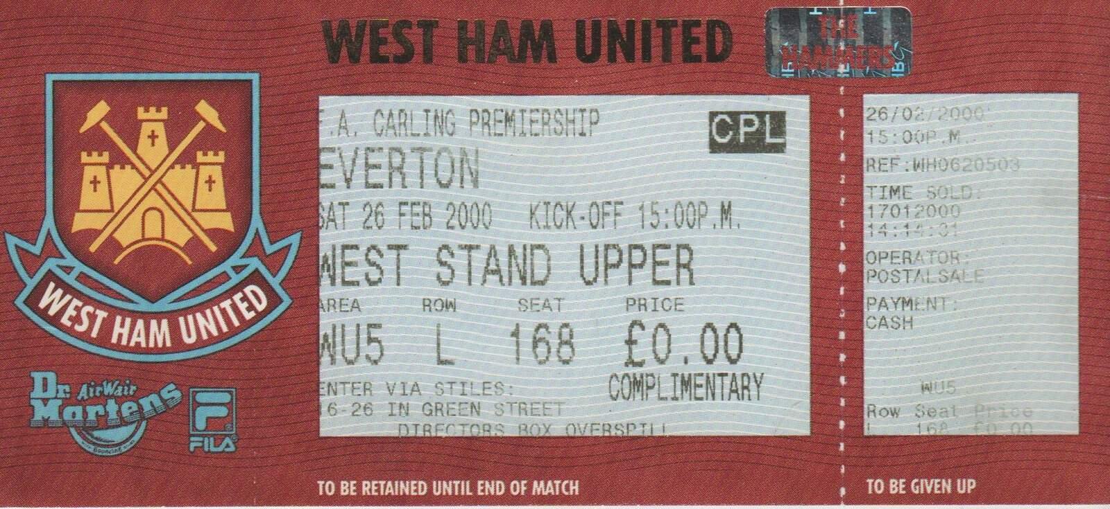 Match: West Ham United v Everton Competition: Premier League Date: 26-Feb-2000 Comments: Rating: 4 Condition: Very good Weight in grams: 20