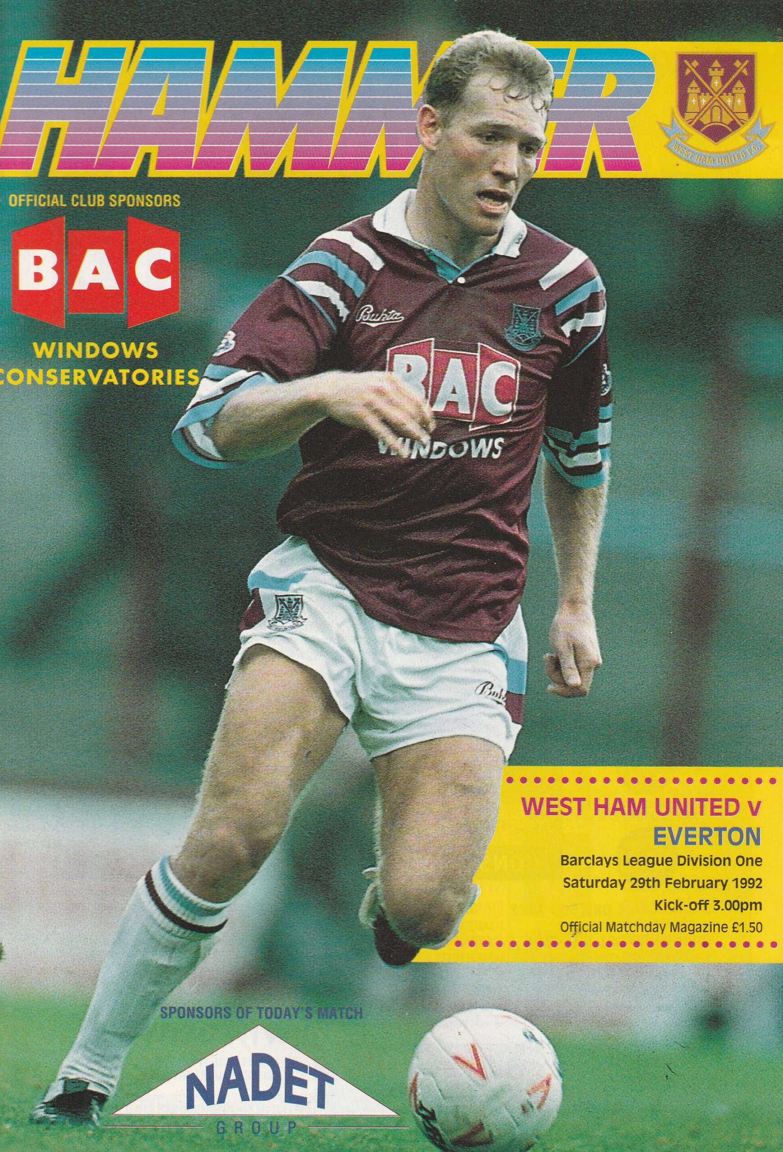 Match: West Ham United v Everton Competition: League Division 1 Date: 29-Feb-1992 Comments: Rating: 4 Condition: Very good Weight in grams: 120
