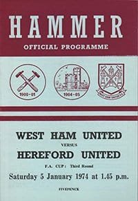Match: West Ham United v Hereford United Competition: FA Cup 3rd Round Date: 05-01-1974 Comments: Rating: 4 Condition: Score on team page Weight in grams: 40