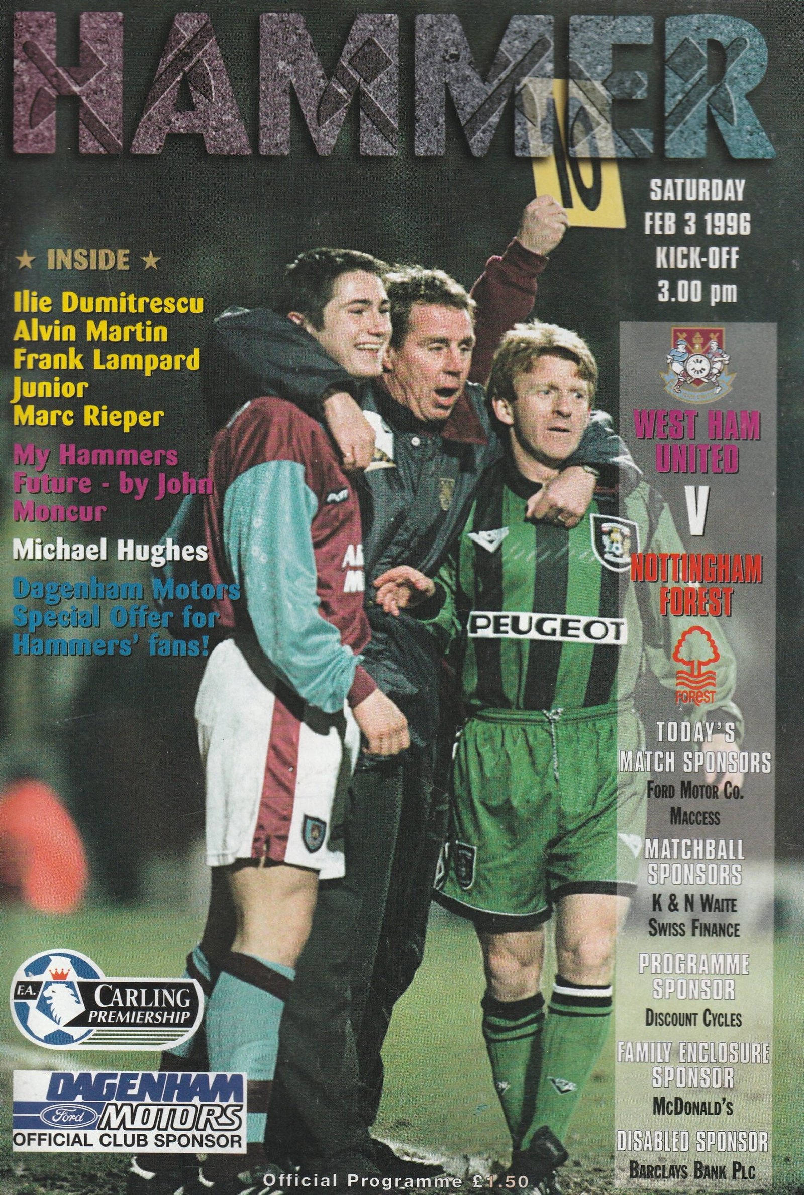 Match: West Ham United v Nottingham Forest Competition: Premier League Date 03-Feb-1996 Comments: Rating: 4 Condition: Very good Weight in grams: 120
