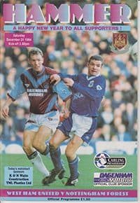 Match: West Ham United v Nottingham Forest Competition: Premier League Date: 31-12-1994 Comments: Rating: 4 Condition: Very good Weight in grams: 100
