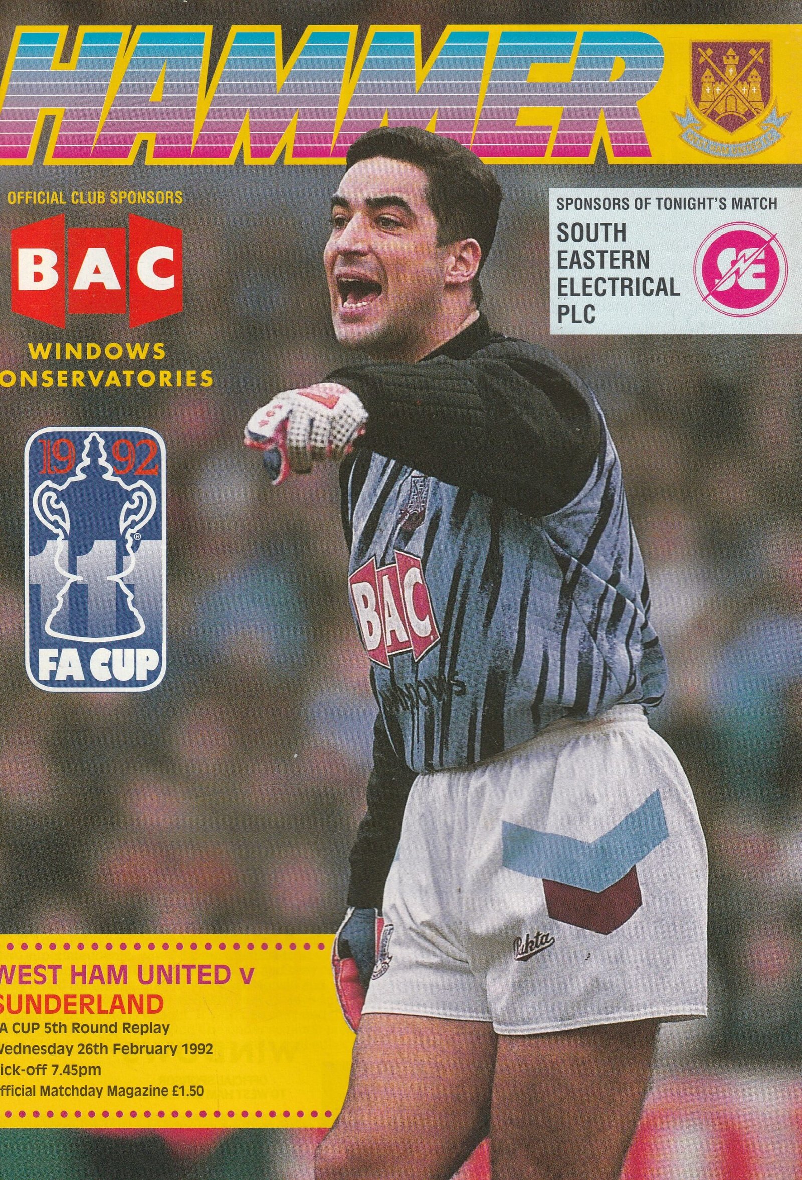 Match: West Ham United v Sunderland Competition: FA Cup 5th Round Replay Date: 26-Feb-1992 Comments: Rating: 4 Condition: Very good Weight in grams: 120