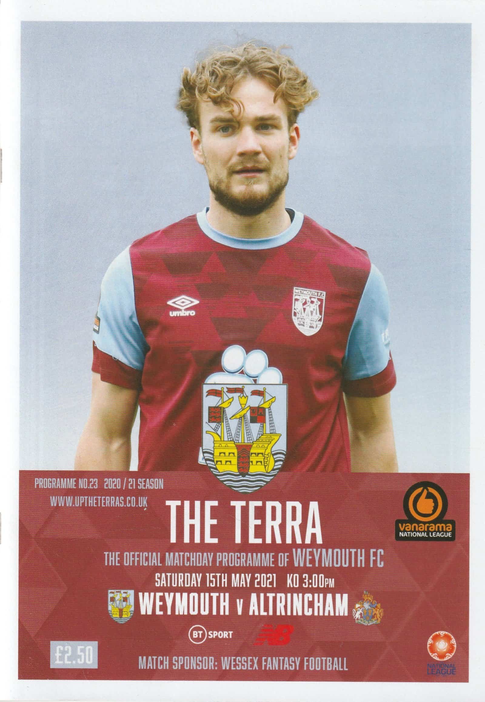 Match: Weymouth v Altrincham Competition: Vanarama National League Date: 15-May-2021 Comments: Rating: 4 Condition: Very Good Weight in grams: 200