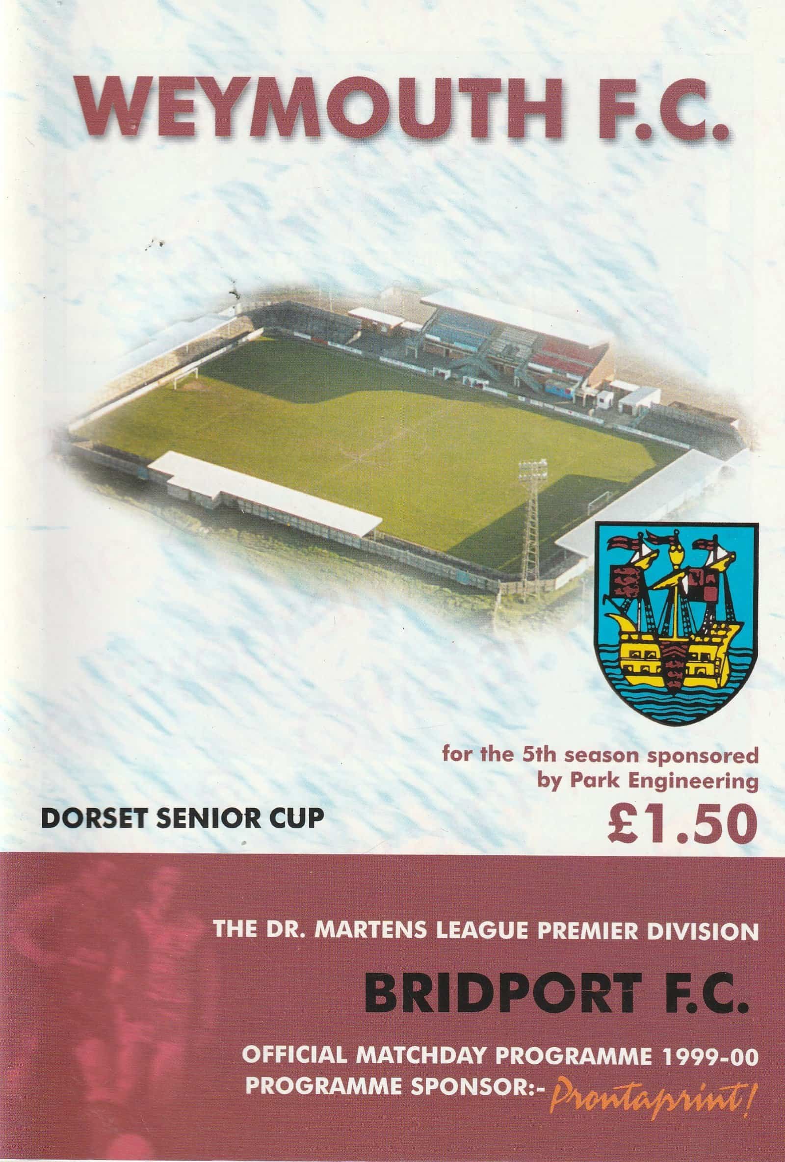 Match: Weymouth v Bridport Competition: Dorset Senior Cup Date: 13-Jan-2000 Comments: Rating: 4 Condition: Very Good Weight in grams: 200