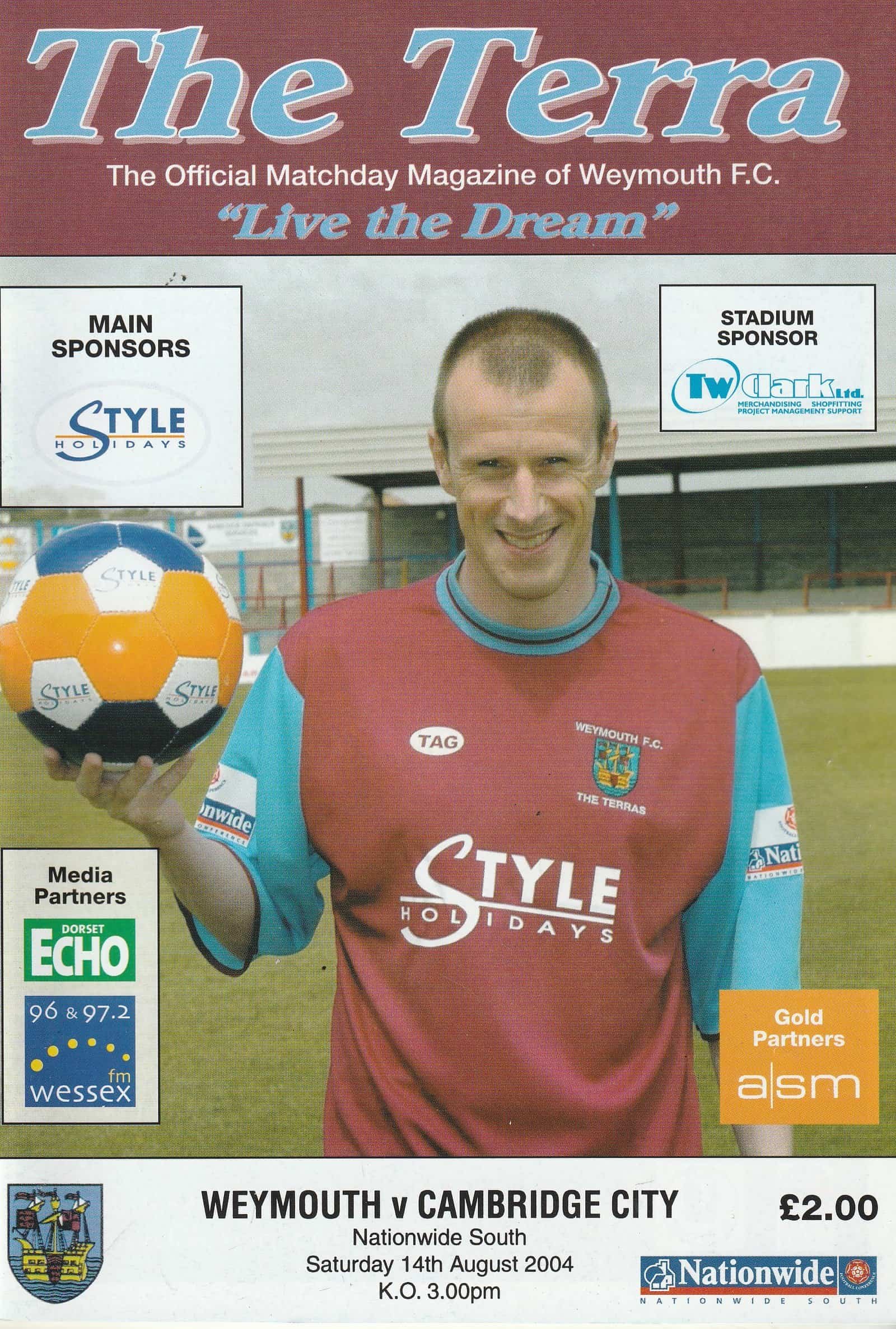 Match: Weymouth v Cambridge City Competition: Nationwide League South Date: 14-Aug-2004 Comments: Rating: 4 Condition: Very Good Weight in grams: 200