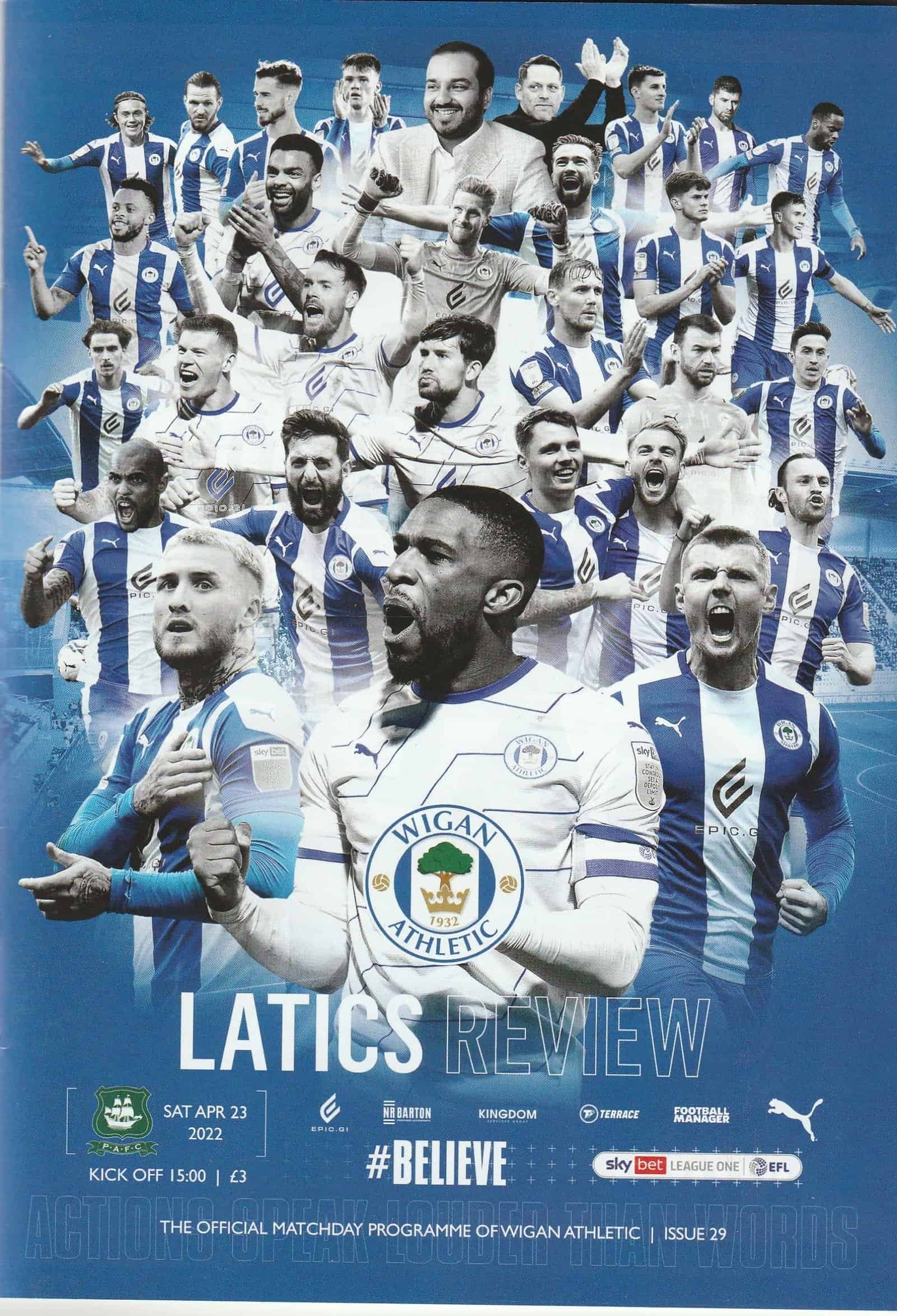 Match: Wigan Athletic v Plymouth Argyle Competition: League 1 Date: 23-Apr-2022 Comments: Rating: 5 Condition: Excellent Weight in grams: 140
