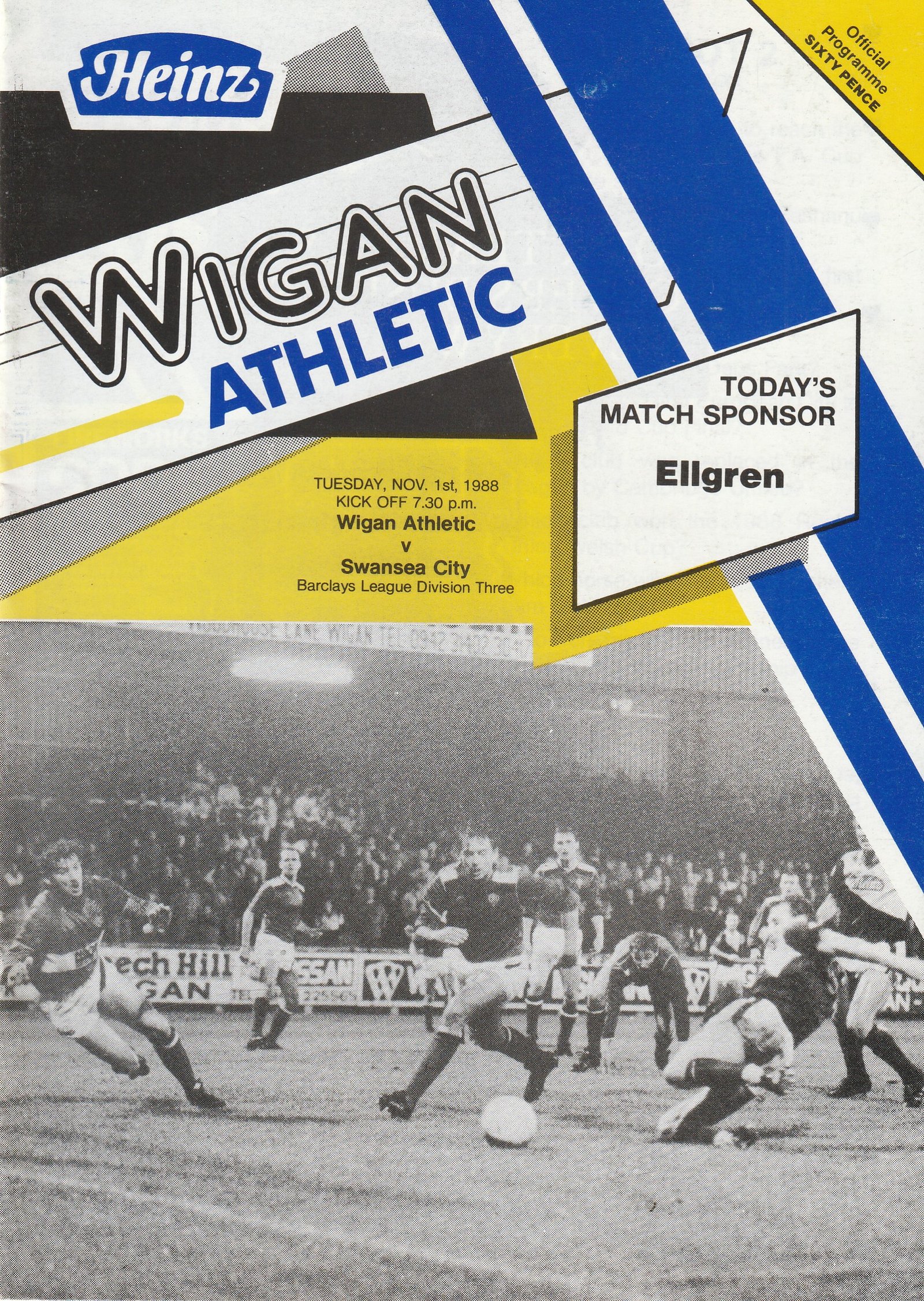 Match: Wigan Athletic v Swansea City Competition: League Division 3 Date: 01-Nov-1988 Comments: Rating: 4 Condition: Very good Weight in grams: 120