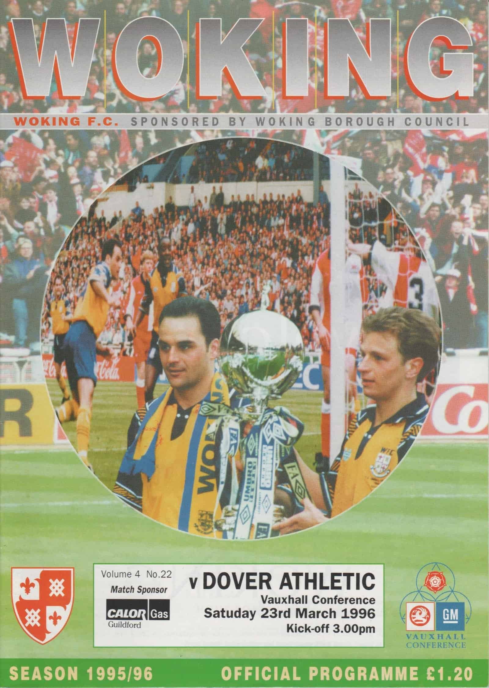 Match: Woking v Dover Athletic Competition: GM Vauxhall Conference Date: 23-Mar-1996 Comments: Rating: 4 Condition: Very good Weight in grams: 100