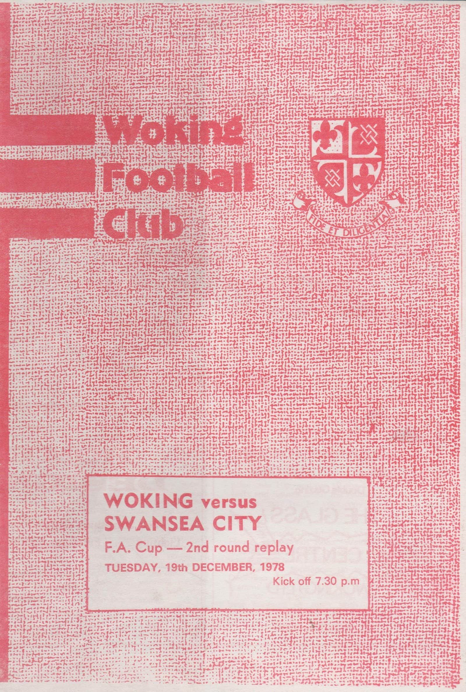 Match: Woking v Swansea City Competition: FA Cup 2nd Round Replay Date: 19-Dec-1978 Comments: Rating: 4 Condition: Very good Weight in grams: 40