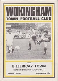 Match: Wokingham Town v Billericay Town Competition: Berger Isthmian League Division 2 Date: 01-11-1980 Comments: Rating: 5 Condition: Very good Weight in grams: 60