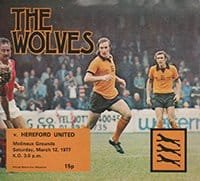 Match: Wolverhampton Wanderers v Hereford United Competition: League Division 2 Date: 12-03-1977 Comments: Rating: 4 Condition: Very good Weight in grams: 60