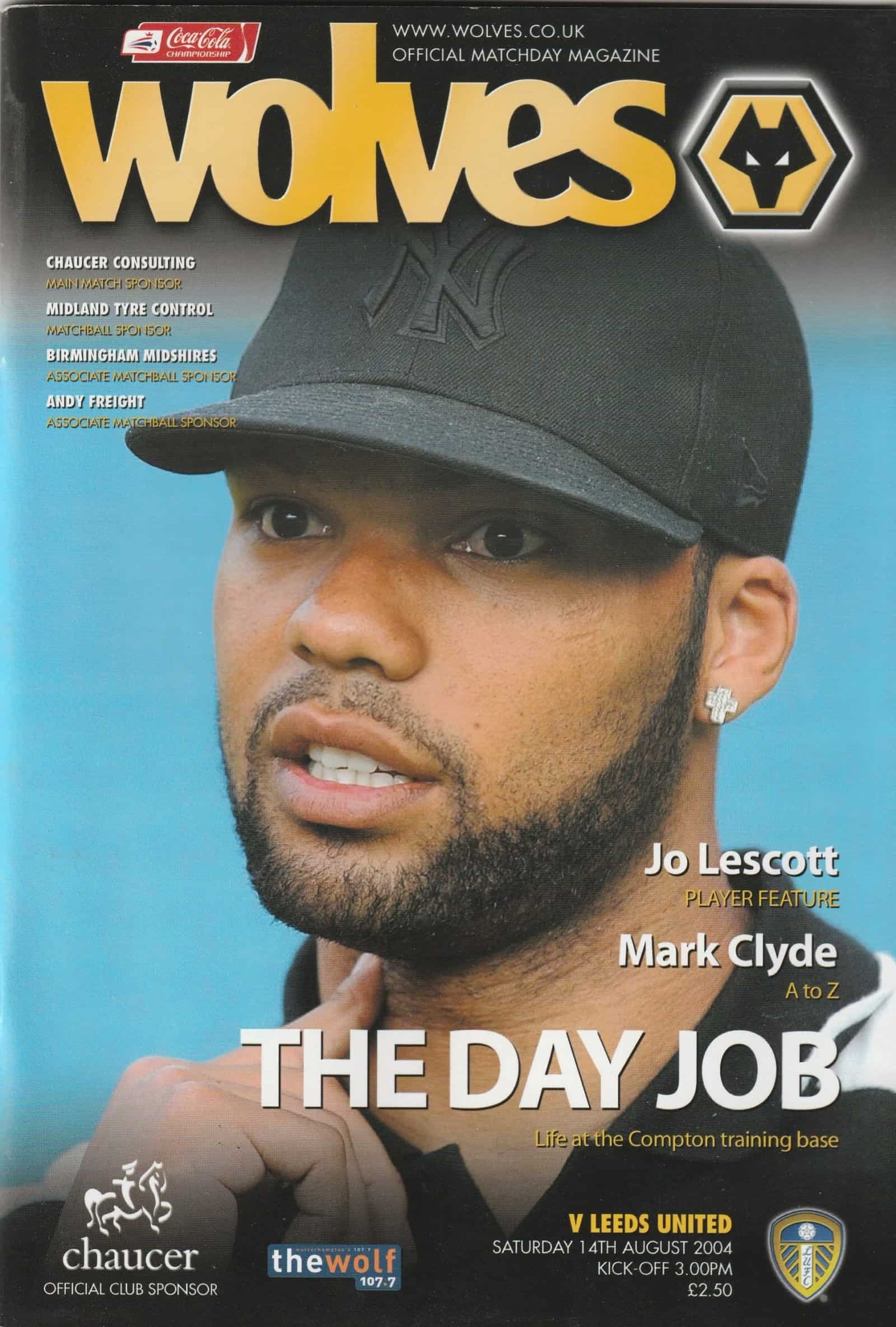 Match: Wolverhampton Wanderers v Leeds United Competition: League Championship Date: 14-Aug-2004 Comments: Rating: 3 Condition: Small tear on back page Weight in grams: 200