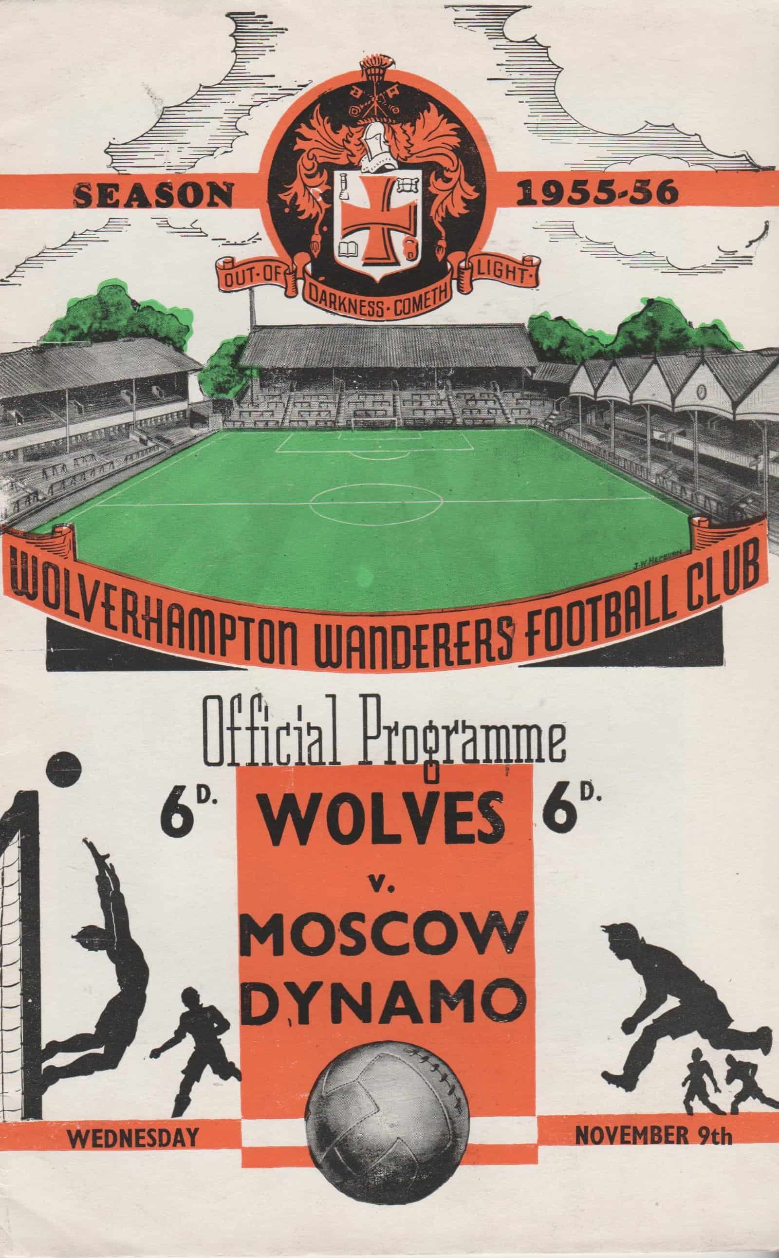 Match: Wolverhampton Wanderers v Moscow Dynamo Competition: Friendly Date: 09-Nov-1955 Comments: Includes separate typed sheet of notes with match details Rating: 3 Condition: Rusty staple, one staple missing Weight in grams: 60