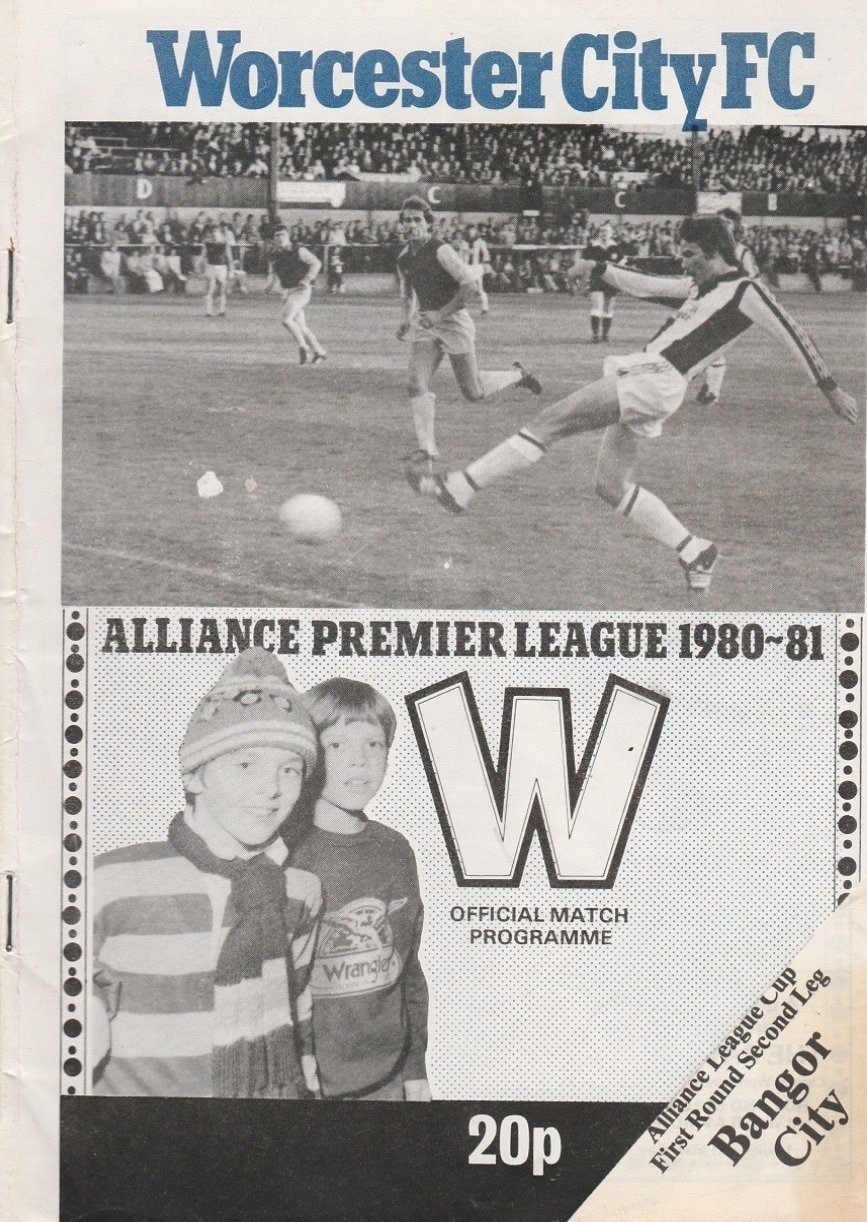 Match: Worcester City v Bangor City Competition: Alliance League Cup 1st Round 2nd leg Date: 01-Sep-1980 Comments: Rating: 3 Condition: Fold, stain on corner of cover Weight in grams: 80