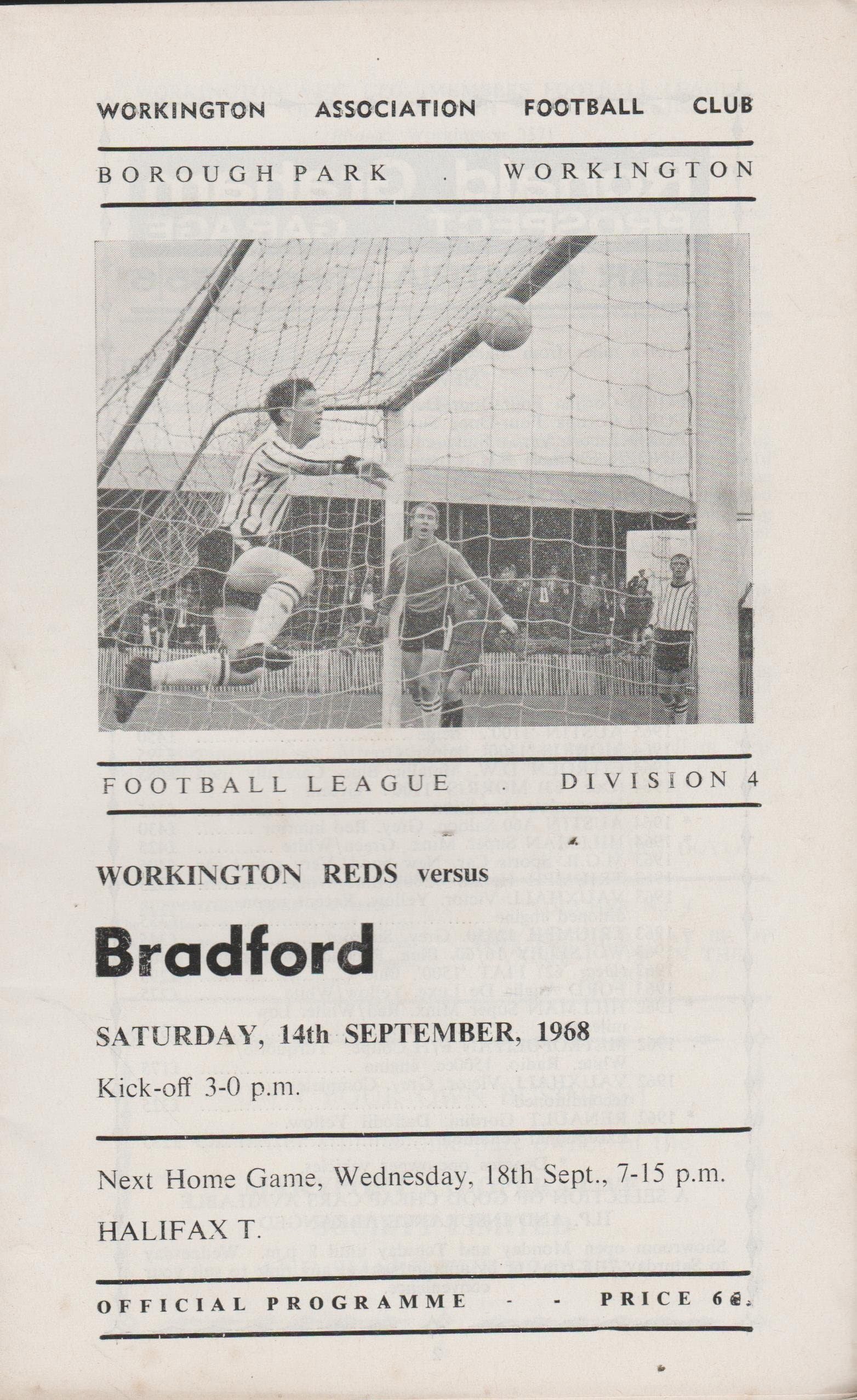 Match: Workington v Bradford Park Avenue Competition: League Division 4 Date: 14-Sep-1968 Comments: Rating: 4 Condition: Very good Weight in grams: 80