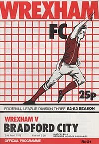 Match: Wrexham v Bradford City Competition: League Division 3 Date: 02-04-1983 Comments: Rating: 5 Condition: Excellent Weight in grams: 60