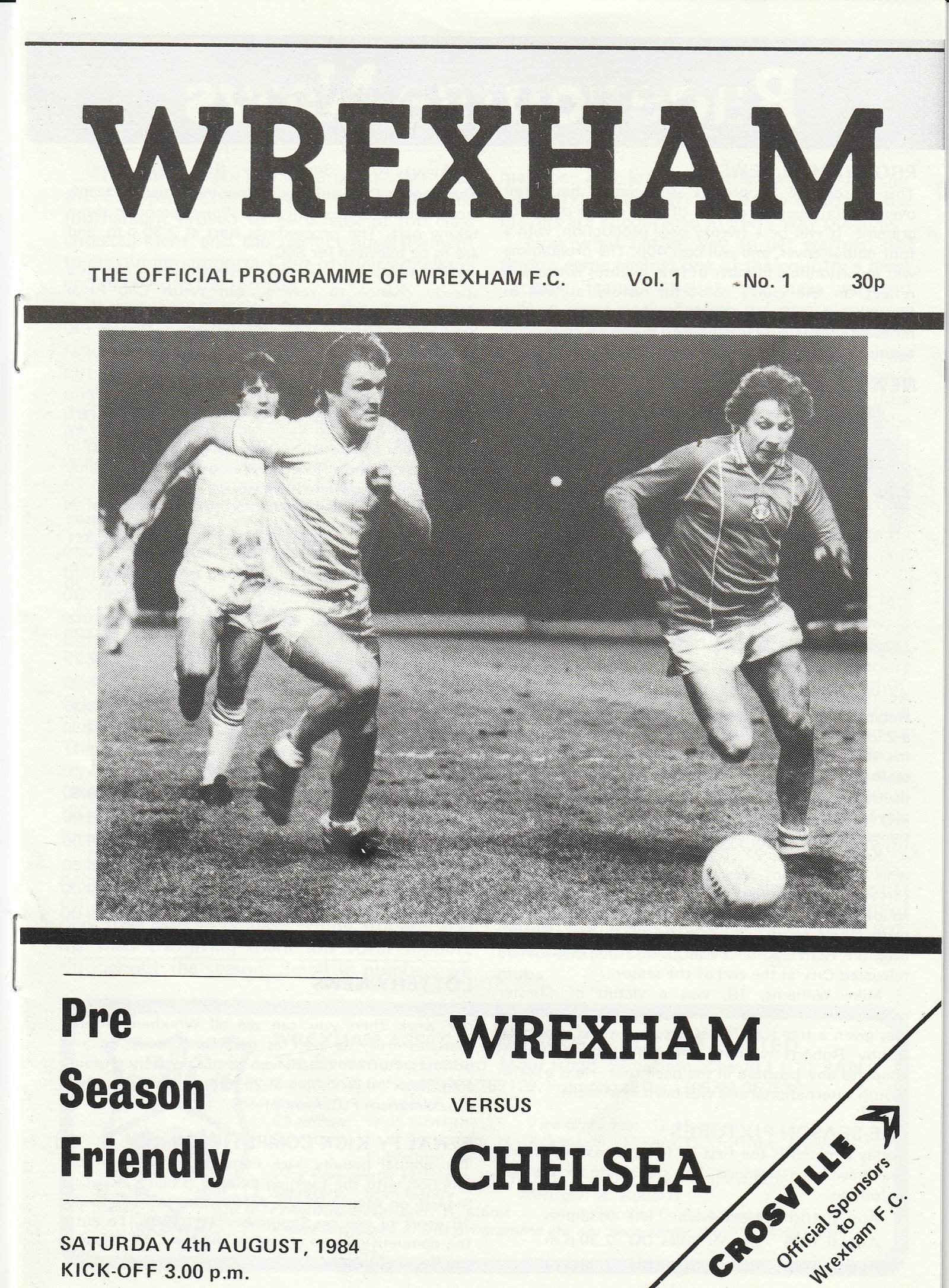 Match: Wrexham v Chelsea Competition: Friendly Date: 04-Aug-1984 Comments: Rating: 4 Condition: Very good Weight in grams: 60